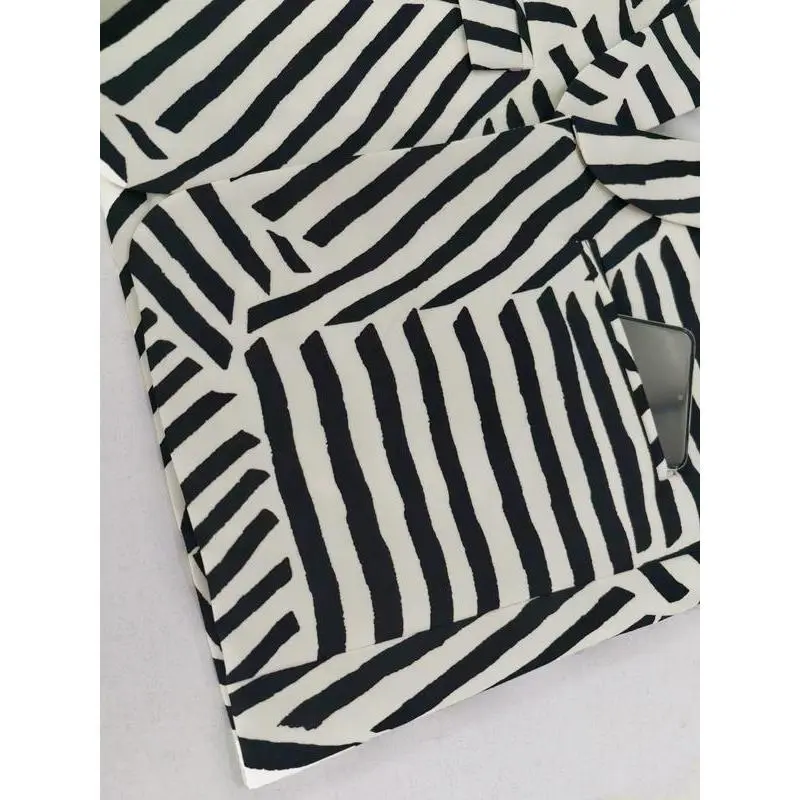 【Geometric Patterns】: Features a unique black-and-white fusion of irregular geometric lines and zebra prints, creating an eye-catching look. 【Loose Suit Shape】: Styled in a relaxed blazer silhouette, this piece offers a comfortable fit that enhances the overall aesthetic. 【Open Collar】: The naturally open collar allows for a breezy feel, contributing to a laid-back yet sophisticated appearance. 【Layered Sleeves】: Slightly stacked sleeves add to the relaxed vibe, balancing the sharp graphic angles with a soft outline. 【All-Season Wear】: Designed for versatile wear across all seasons, making it a practical addition to diverse wardrobes.