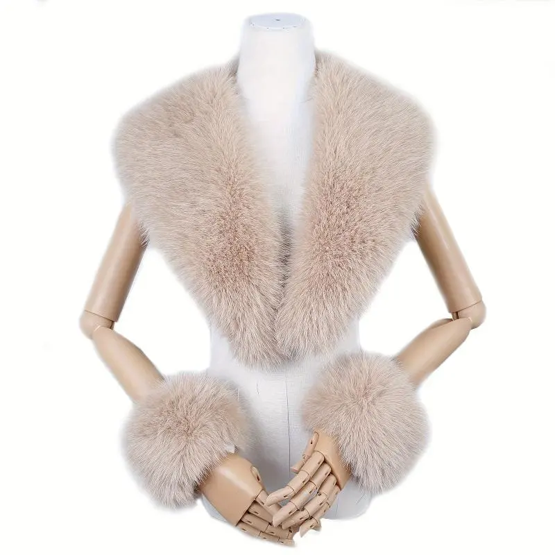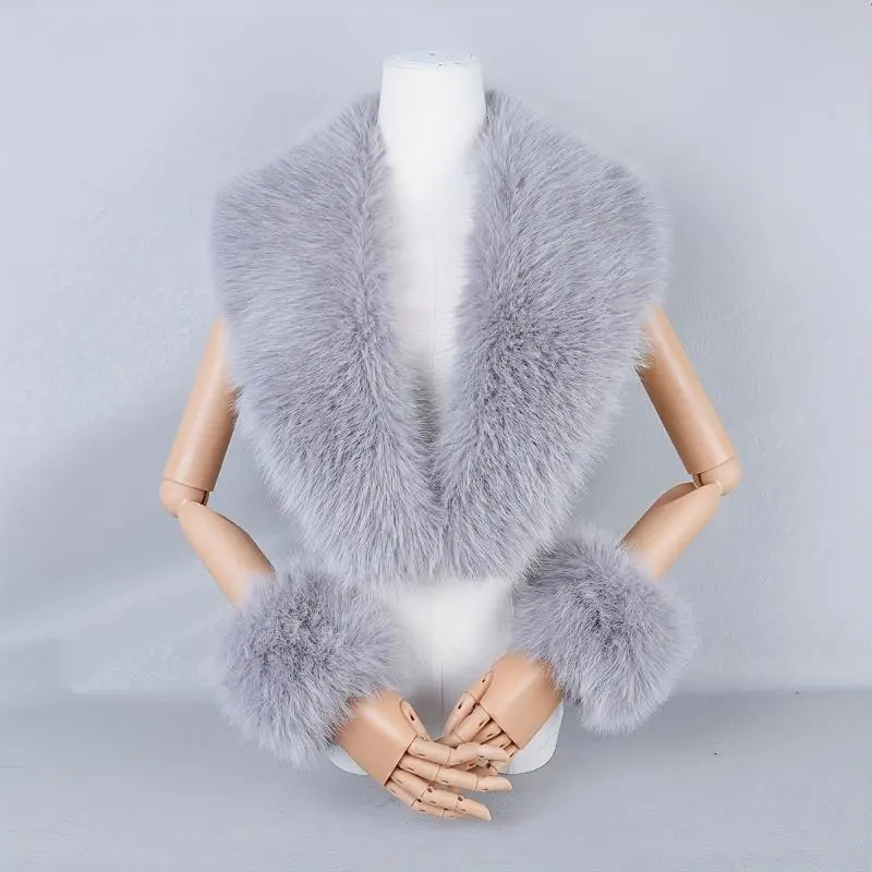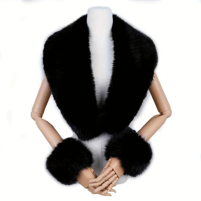 3pcs Elegant Faux Fur Shawl Collar Set for Women - Chic, Windproof & Warm, Thick Acrylic Scarves with Cuffs, Perfect for Going Out, Stylish Black, Green, Pink, Beige, White, and Purple, Winter Accessories|Chic Knitwear|Decorative Shawl