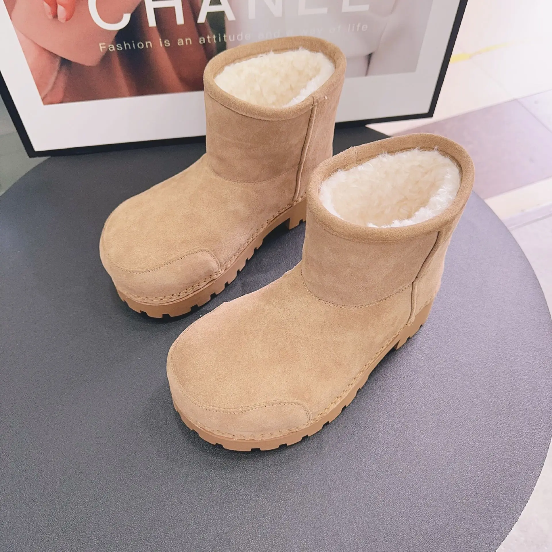 Big Head Design Platform Snow Boots,Thick Soled Height Increasing Long Tube Warm Cotton Boots,Winter Women's Brown Plush Shoes Girl Footwear