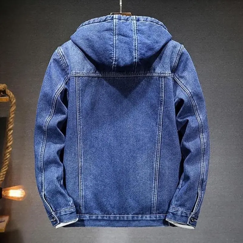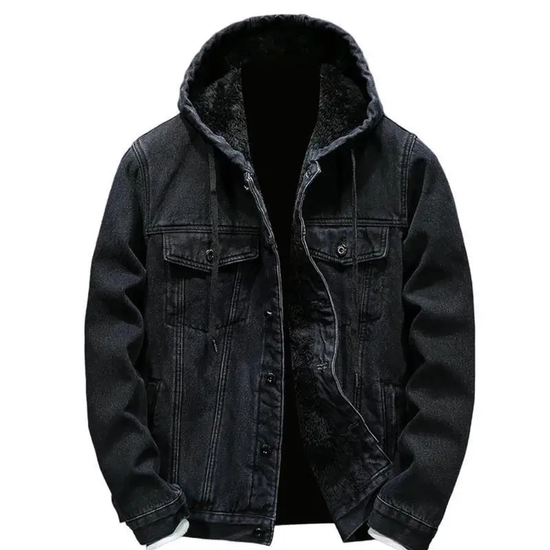 Introducing the men's fleece-lined denim hoodie jacket, a perfect addition to your winter wardrobe.This jacket is designed to keep you warm and comfortable during the cold season.The fleece lining provides extra warmth and comfort, making it ideal for outdoor activities or simply lounging at home. The jacket features a button-down style, allowing for easy on and off and adjustable ventilation.The cowboy jean jacket design adds a stylish and trendy look to the jacket, making it a great choice for casual wear.The thicken trucker coats provide extra warmth and protection against the elements, making it suitable for outdoor activities such as hiking or camping. This jacket is not only stylish but also functional.The sweatshirt design provides a comfortable and relaxed fit, making it perfect for everyday wear.The denim material is durable and long-lasting, making it a great investment for your wardrobe. In summary, the men's fleece-lined denim hoodie jacket is a must-have for the winter season. It is warm, comfortable, and stylish, making it a great addition to your wardrobe. Whether you're going for a hike or just running errands, this jacket will keep you warm and cozy all day long.