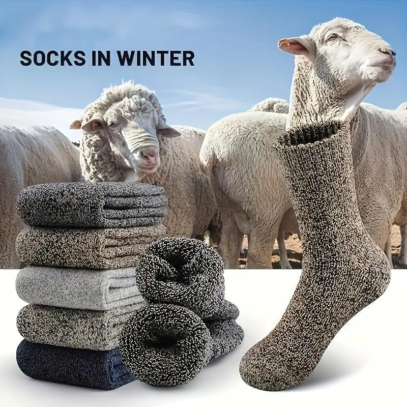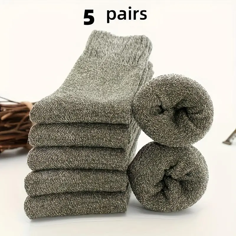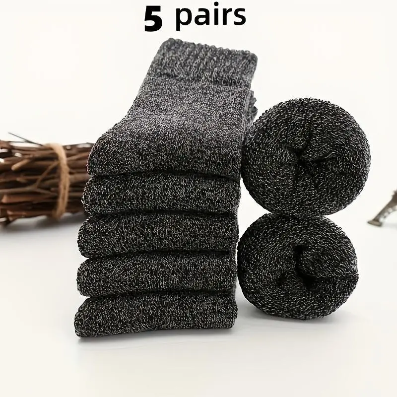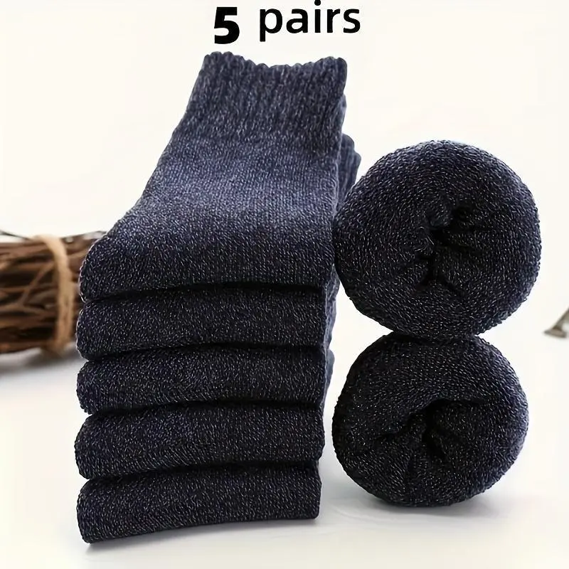 Men's Thickened Thermal Socks, 5 Pairs Pack, Daily Solid Color Knee-High Winter Men's Socks, Insulated Cold-Proof Boot Socks, Classic Soft Material, Hand Wash Only, Suitable for Shoes and Fashion Matching