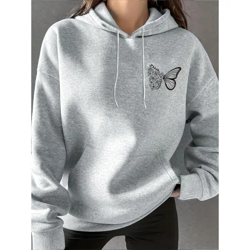 Women's Casual Purple Hoodie with Intricate Butterfly & Floral Design - Trendy Long Sleeve, 100% Polyester, Machine Washable Sweatshirt with Drawstring Hood, Casual Wear Hoodie | Casual Style Hoodie | Durable Casualwear, Oversized Hoodie