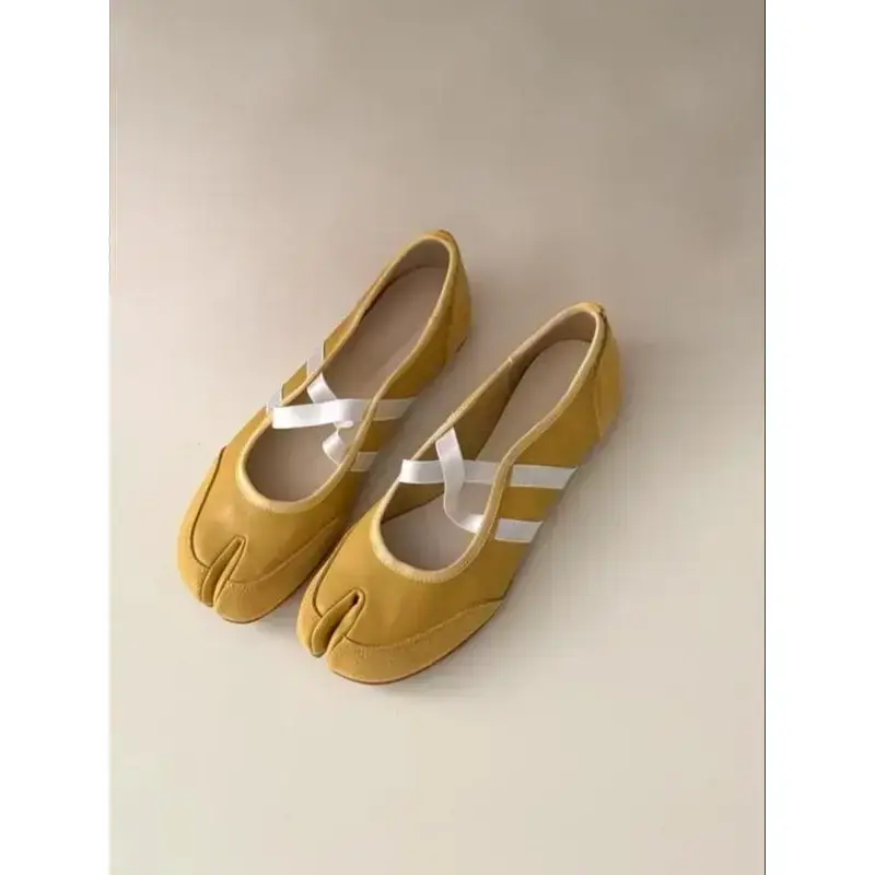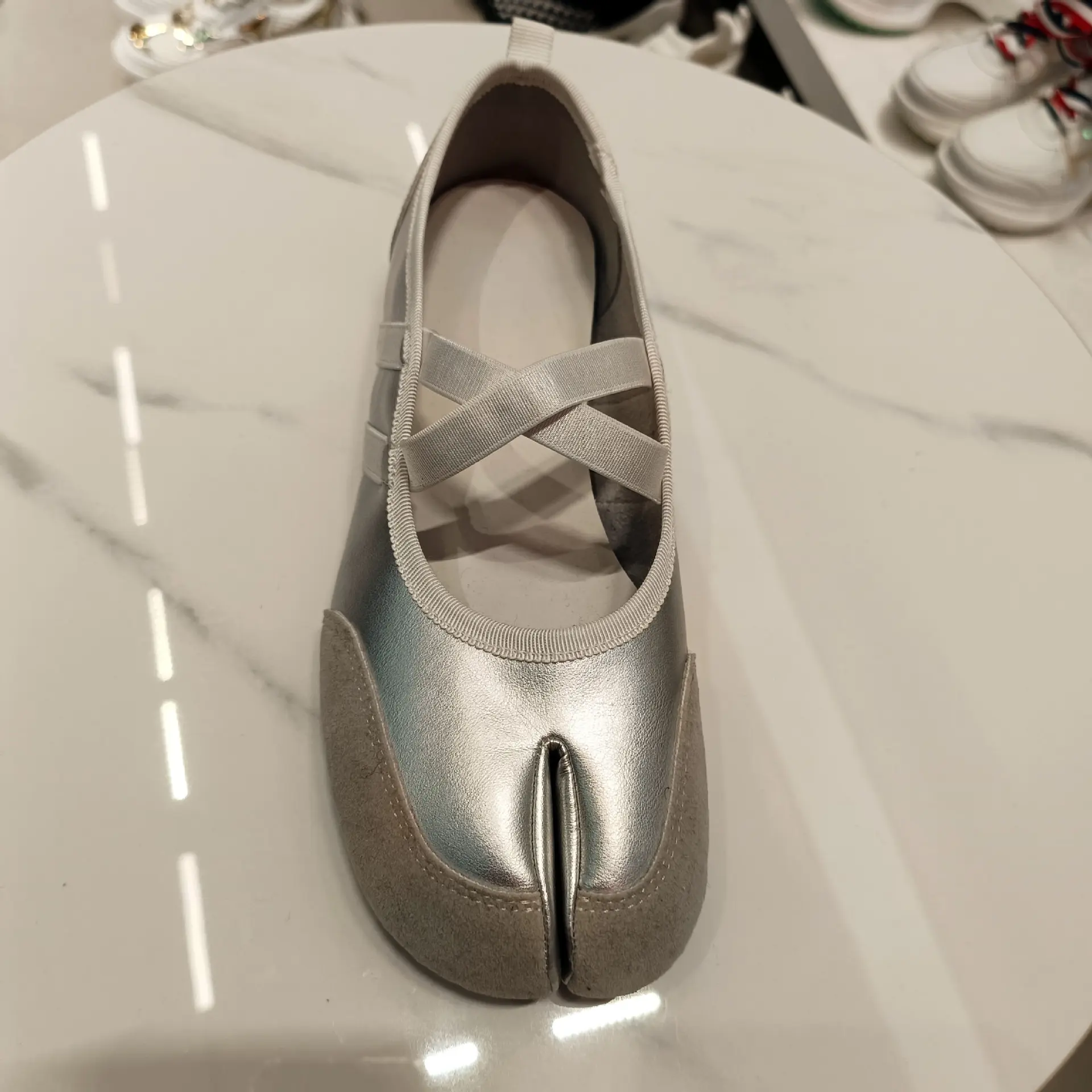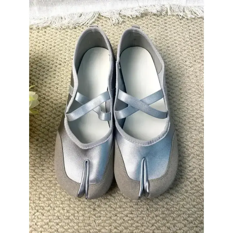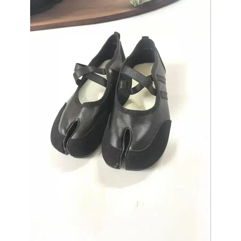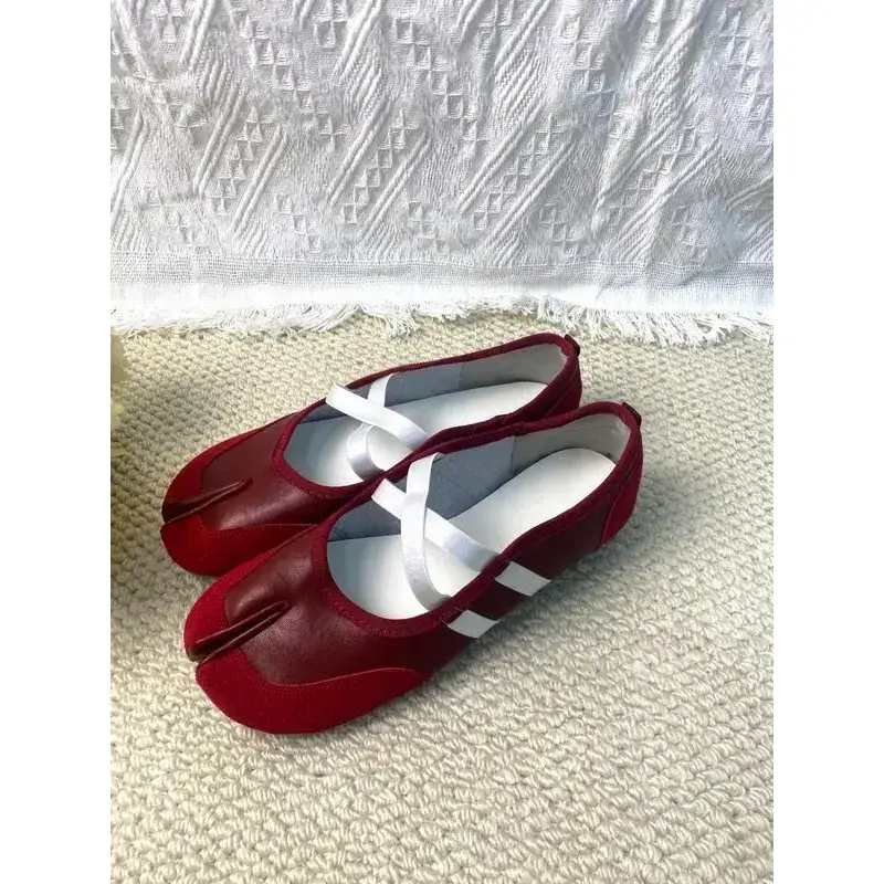 【Unique Split Toe】: Featuring a split toe design that distinguishes it from traditional ballet flats, enhancing breathability and foot movement. 【Cross-Strap Feature】: The cross-strap design provides extra support and a secure fit, making it suitable for active outdoor activities. 【Soft PU Leather】: Crafted from PU leather for a gentle touch and long-lasting wear, promoting durability without sacrificing aesthetics. 【Rubber Sole】: Equipped with a rubber sole that offers excellent grip, ensuring stability on various surfaces while walking. 【Seasonal Versatility】: Designed for use in all seasons, making it a practical choice for both casual outings and special events.