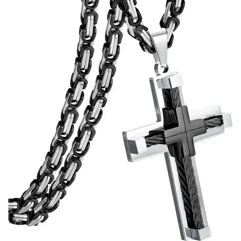 Product Description ? FLORIDECO stainless steel large cross chain silver/gold/black cross pendant byzantine chain necklace cross necklace for men ,24" daily Size:Pendant 25.7*4CM Length61CM - Stylish Design: The Cross Necklace for Men features a large cross pendant with a sleek and modern design, making it a fashionable accessory for any outfit. - High-Quality Material: Made from premium silver, gold, or black-plated stainless steel, this necklace is durable and resistant to tarnishing, ensuring long-lasting wear. - Adjustable Length: The Byzantine chain necklace is designed with an adjustable length, allowing you to customize the fit according to your preference and style. - Versatile: This cross necklace is suitable for various occasions, whether it's a casual day out or a formal event, adding a touch of elegance and spirituality to your look. - Perfect Gift: With its impressive design and quality craftsmanship, this necklace makes a thoughtful gift for birthdays, anniversaries, or any special occasion for the men in your life. ?