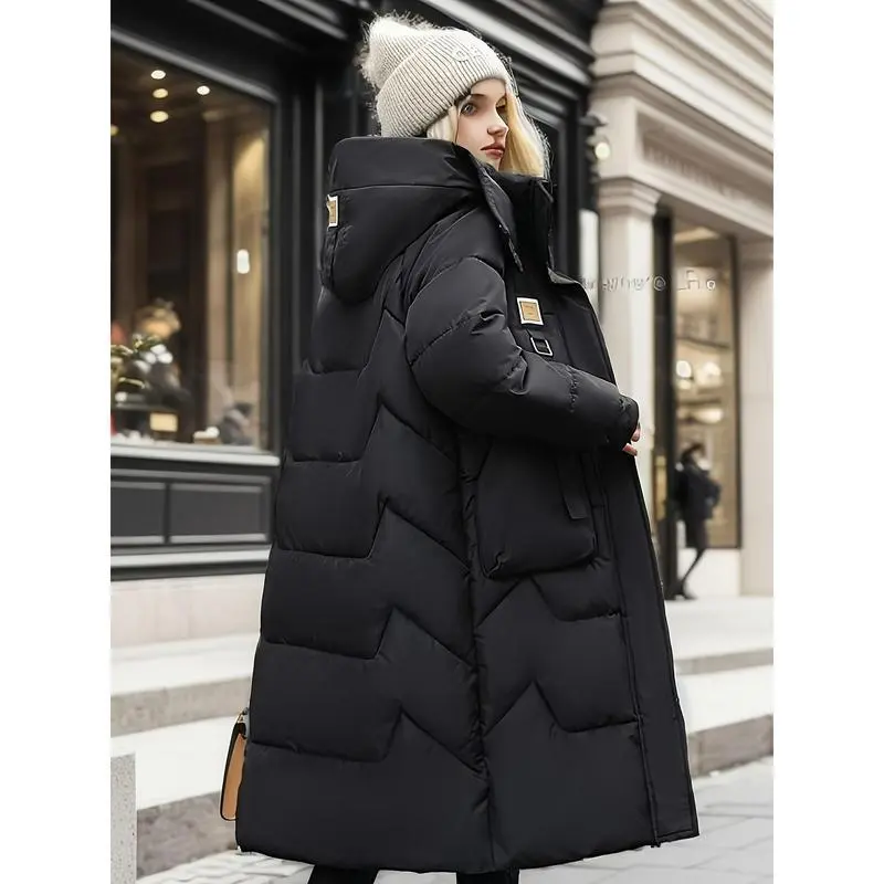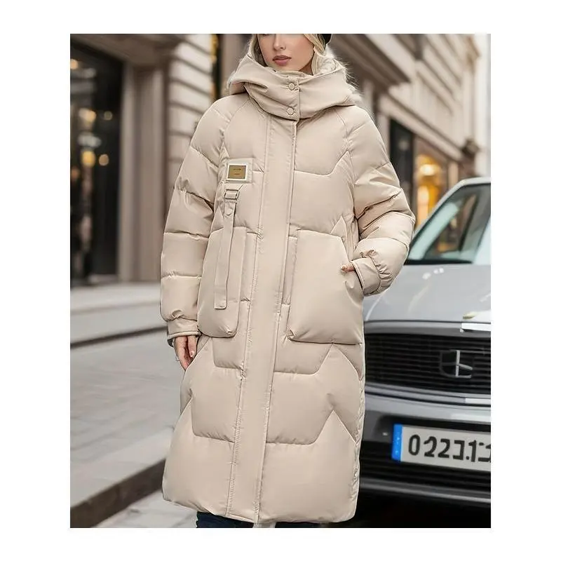 Women's Casual Long Hooded Jacket - Thick, Warm Puffer Coat with Pockets Fall/Winter, Machine Washable Collar Womenswear