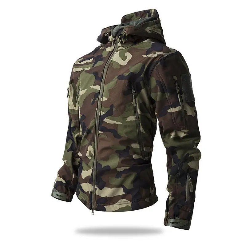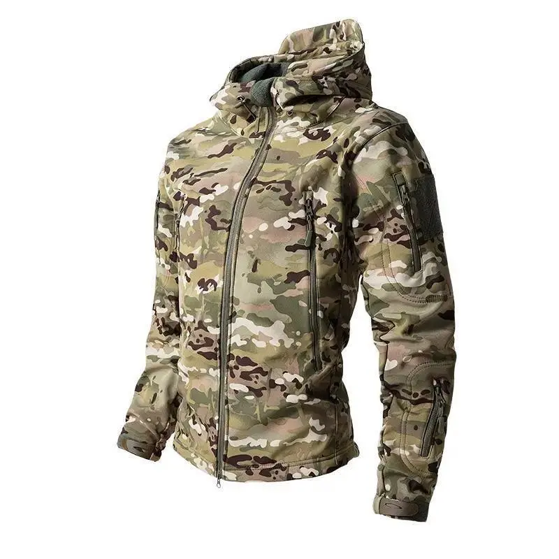 Men's Multicam Tactical Softshell Jacket, Hooded Waterproof Outdoor Coat with Multiple Pockets for Hiking & Military Operations unisex style