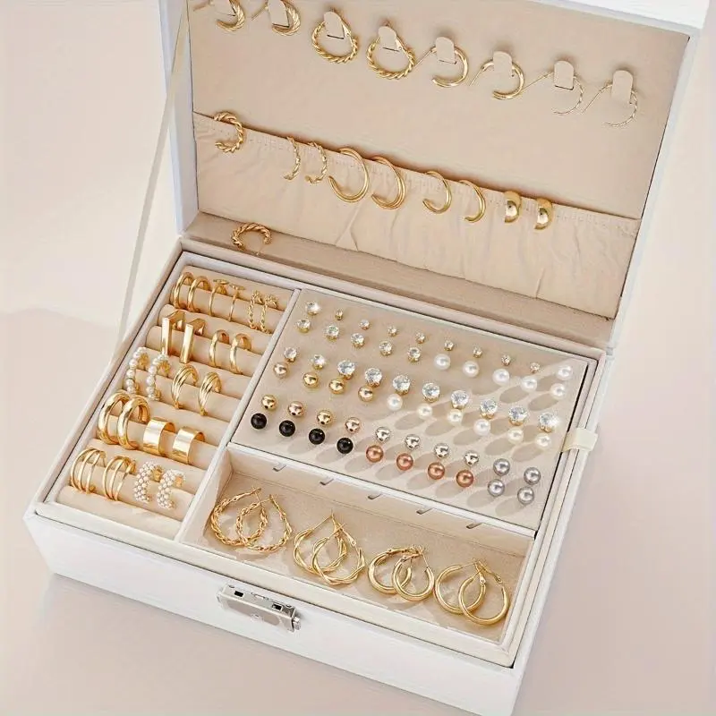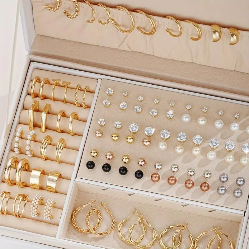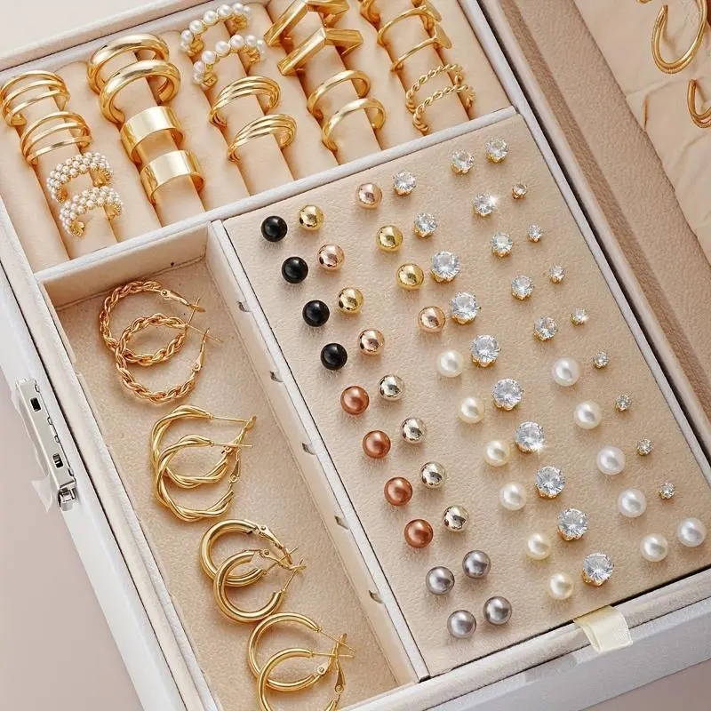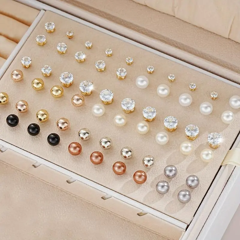 108 Pcs Set Of Exquisite Female Earrings Zinc Alloy Jewelry With Rhinestones Inlaid Elegant Leisure Style For Women Gift Without Gift Box