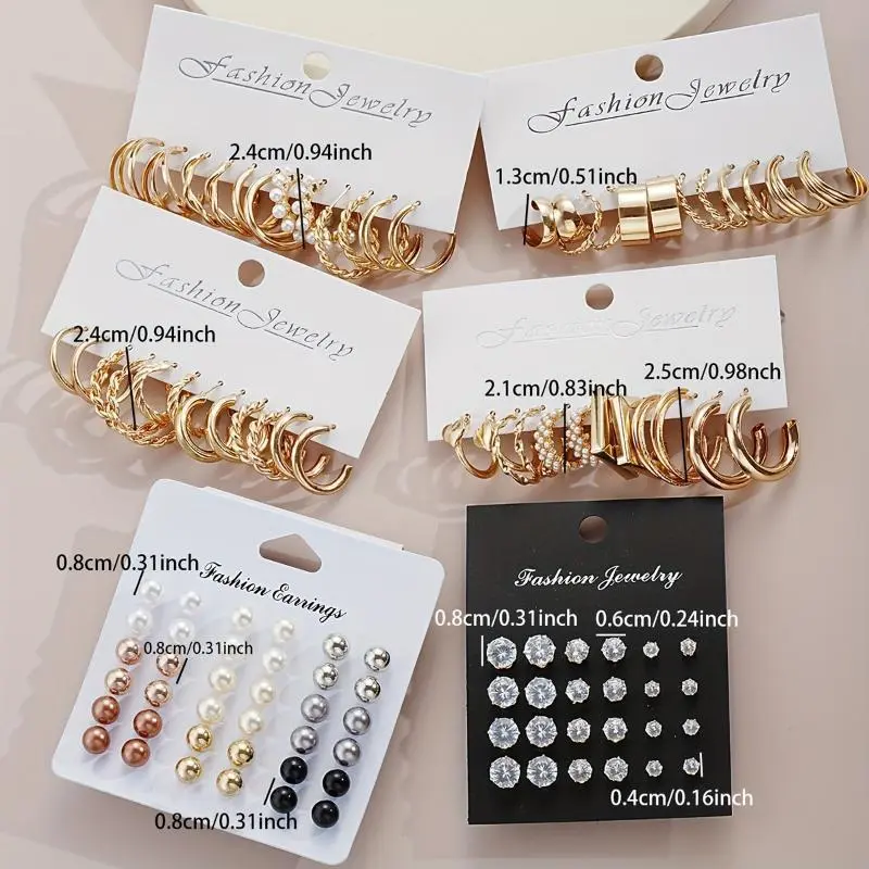 This 108-piece set features exquisite female earrings made of zinc alloy. The earrings are adorned with rhinestones, adding a touch of elegance. Perfect for casual and vacation occasions, these earrings are suitable for daily wear. The ear needle material is stainless steel, ensuring comfort. No gift box is included. 🌟 Material and Style 🌟 📌 Additional Information 📌 🎁 Perfect Gift 🎁 These earrings are an ideal gift for women. They are versatile and suitable for various occasions.
