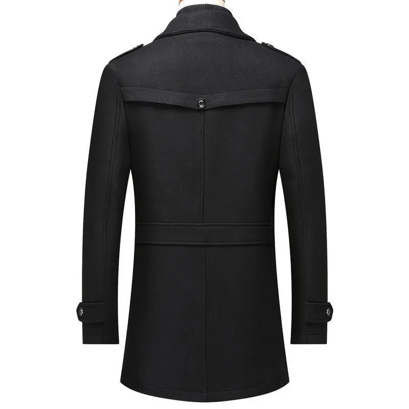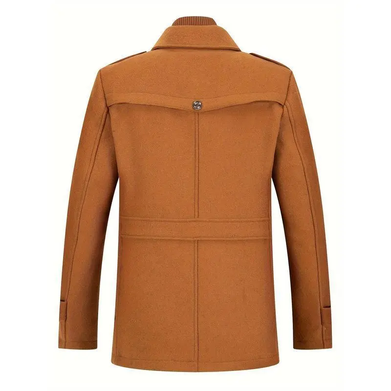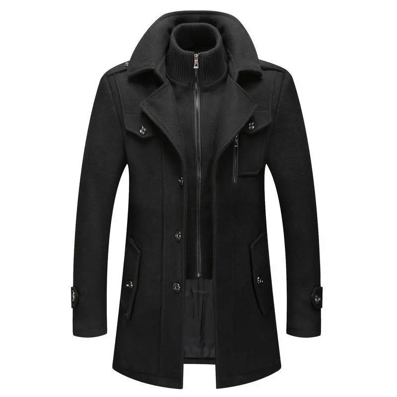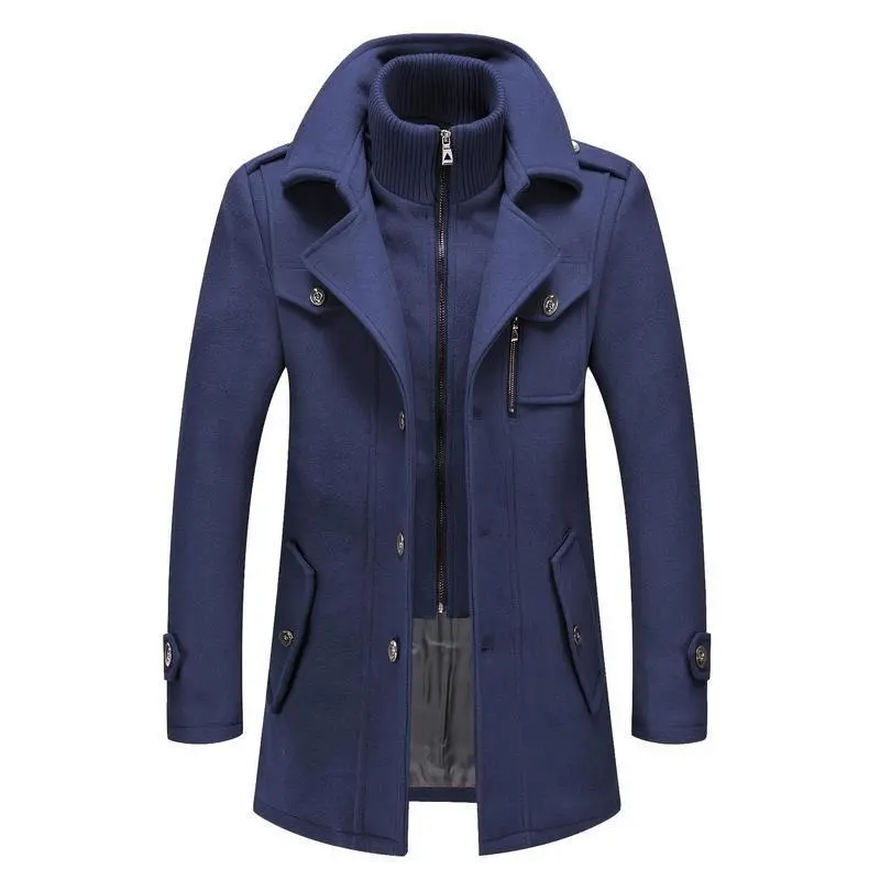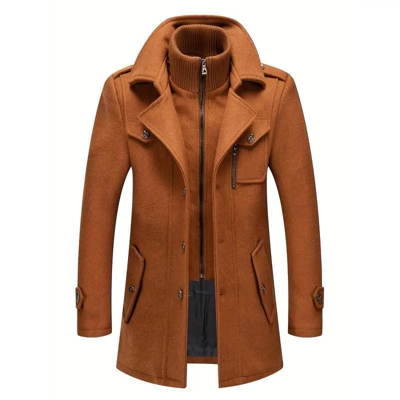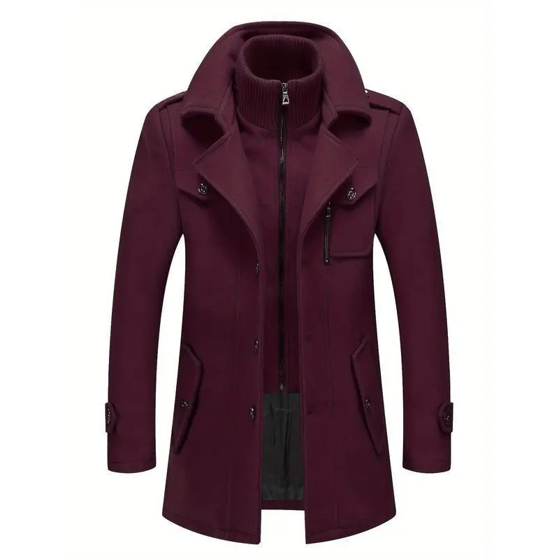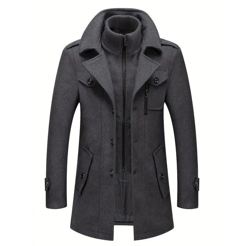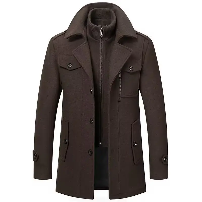 Men's Stand Collar Wool Blend Pea Coats With Removable Inner Collar Single Breasted Overcoat