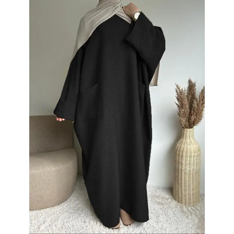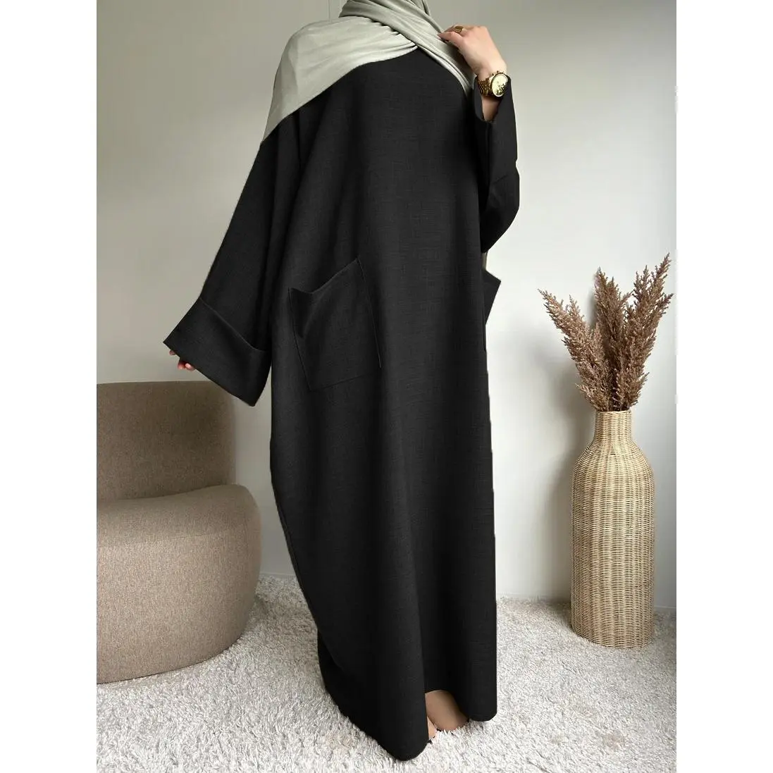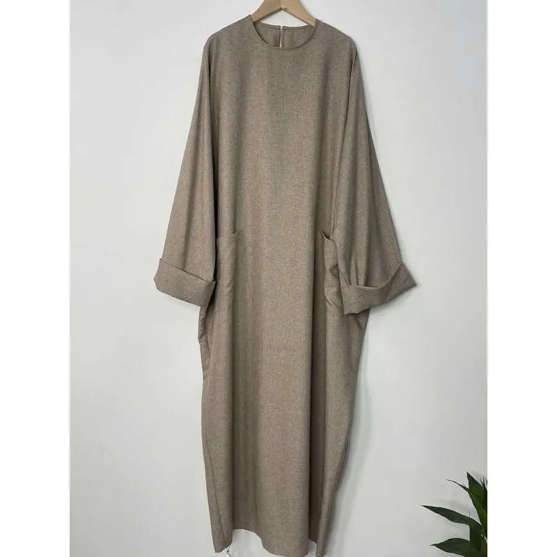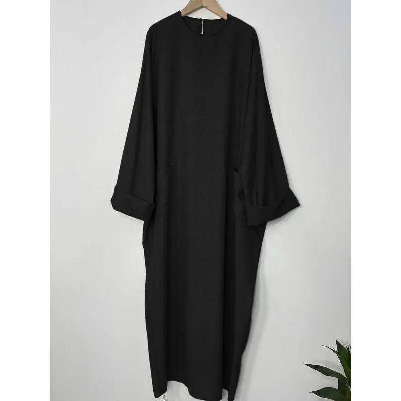 Women's Long-Sleeve Solid Color Robe for Casual Daily Wear All-Season Islamic Muslim Arabic Clothing Thobe