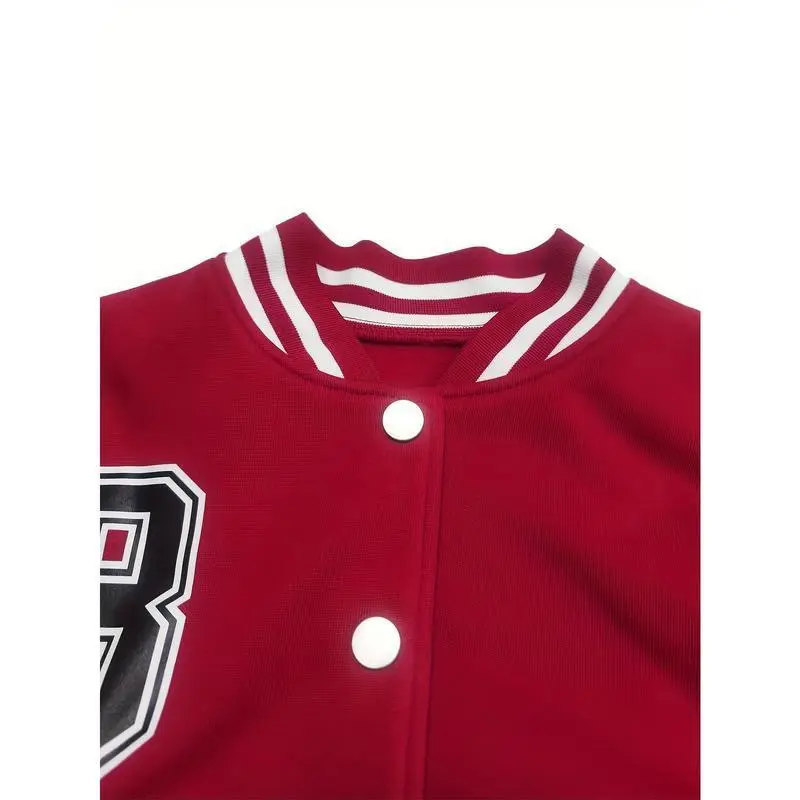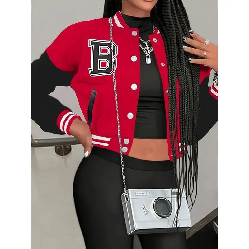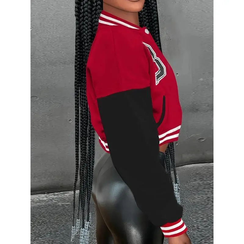 Patchwork Preppy Style Jacket Women, Autumn Crop Tops Classic Baseball Uniform Coat, Casual Letter Decor Jacket For Fall, Winter And Spring