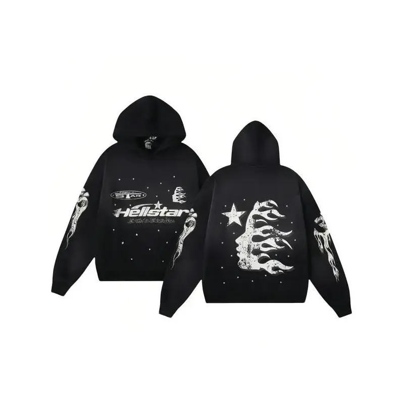 Hell Star Pattern Street Style Loose Zip Hoodie, Unisex Casual Long Sleeve Sweatshirt, Sporty Warm Version, Men and Women