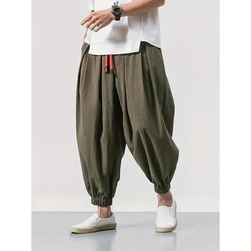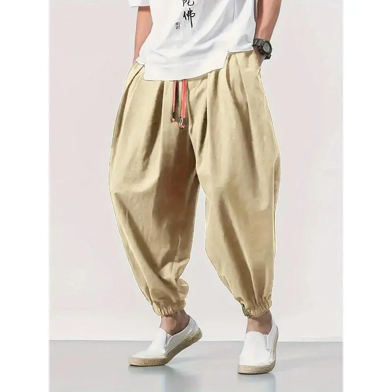 Men's Pocket Drawstring Waist Harem Pants, Athleisure Casual Comfy Pants for Daily Outdoor Wear, Birthday Clothes, Mens Pants, Woven Bottoms for Spring & Fall, Pants for Men, Baggy Trousers