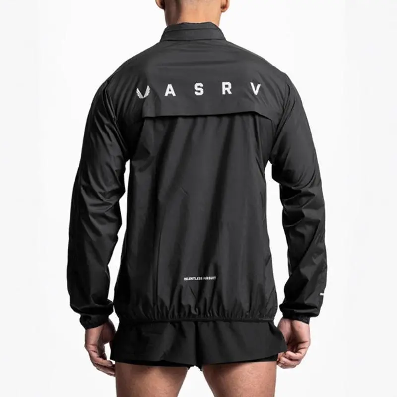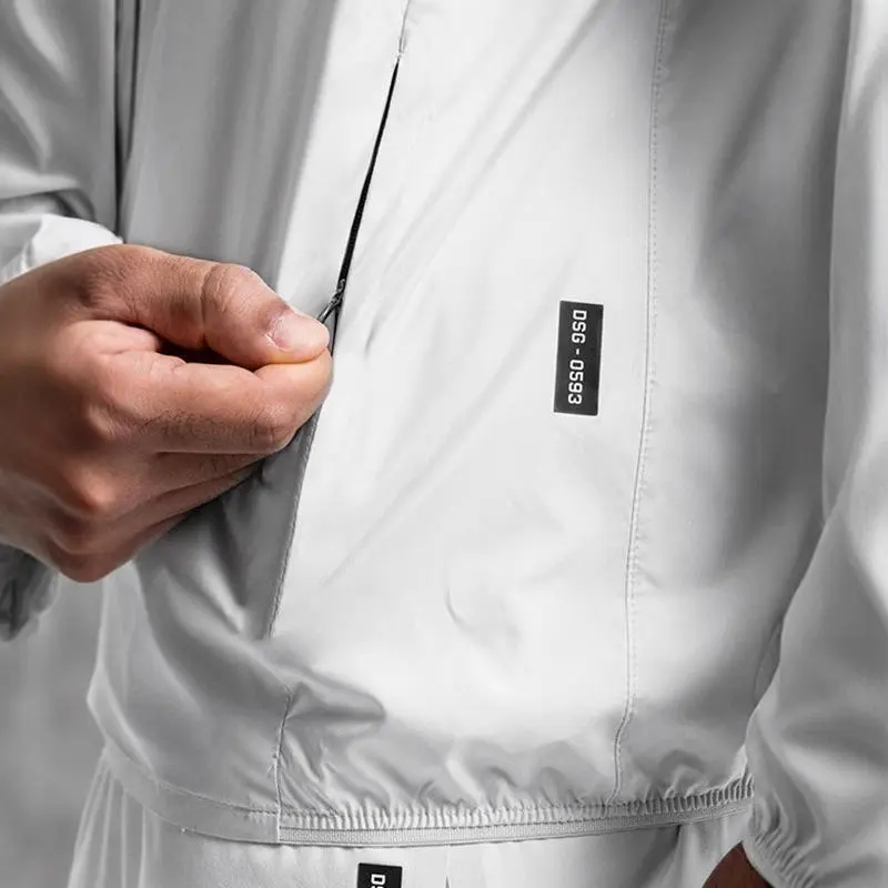 Men's Windproof Hooded Training Jacket Gym Sports Running Reflective Zipper Elastic Streetwear Oversized Fitness Sportswear