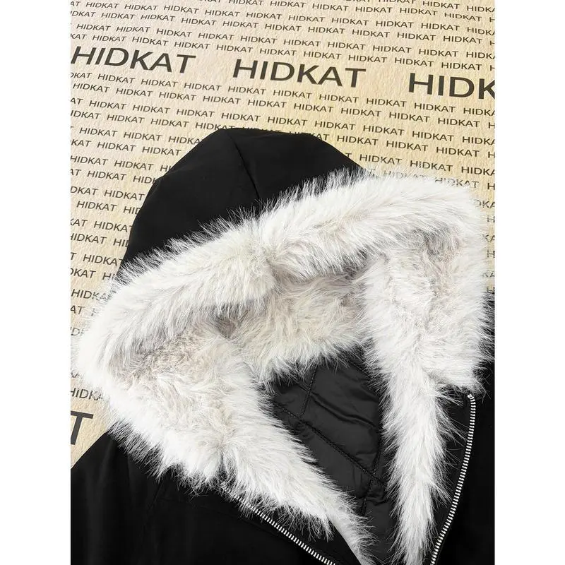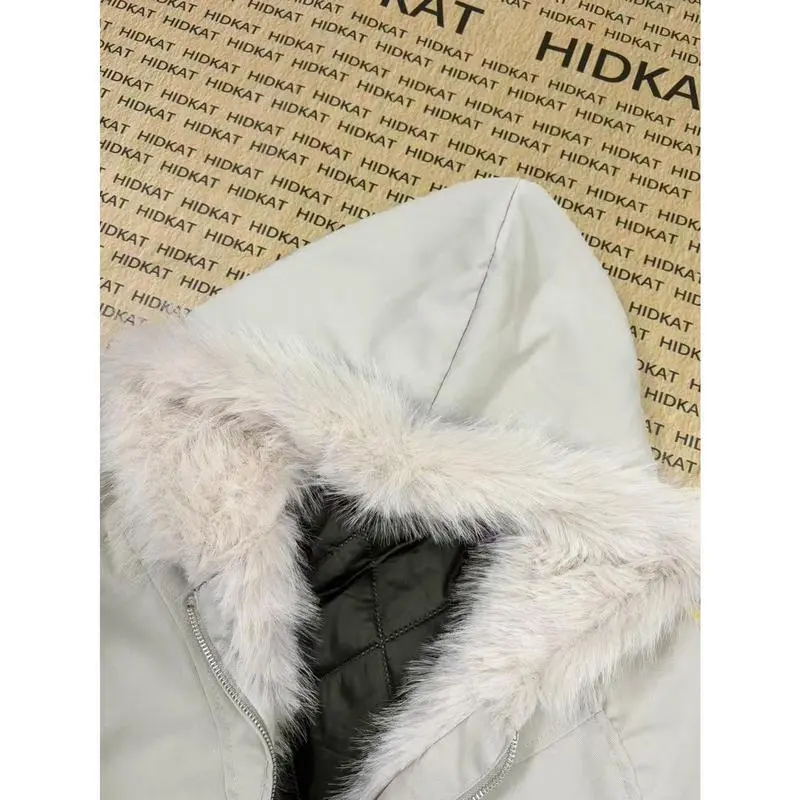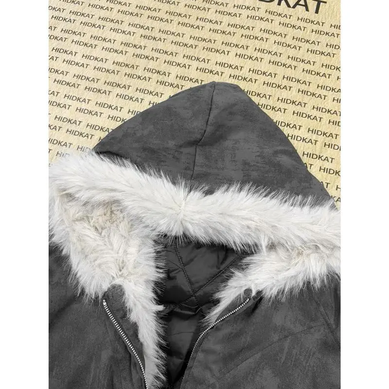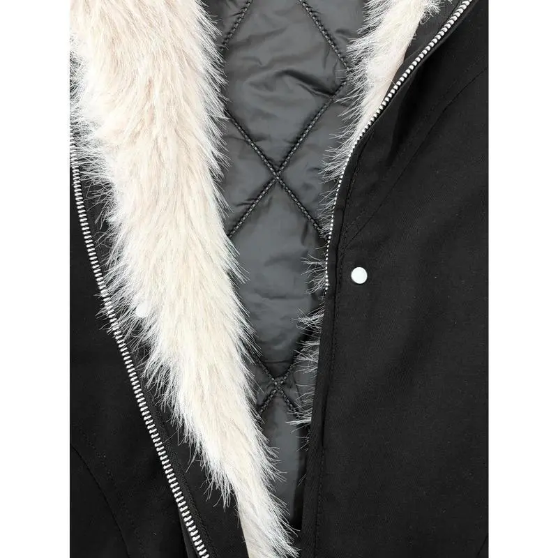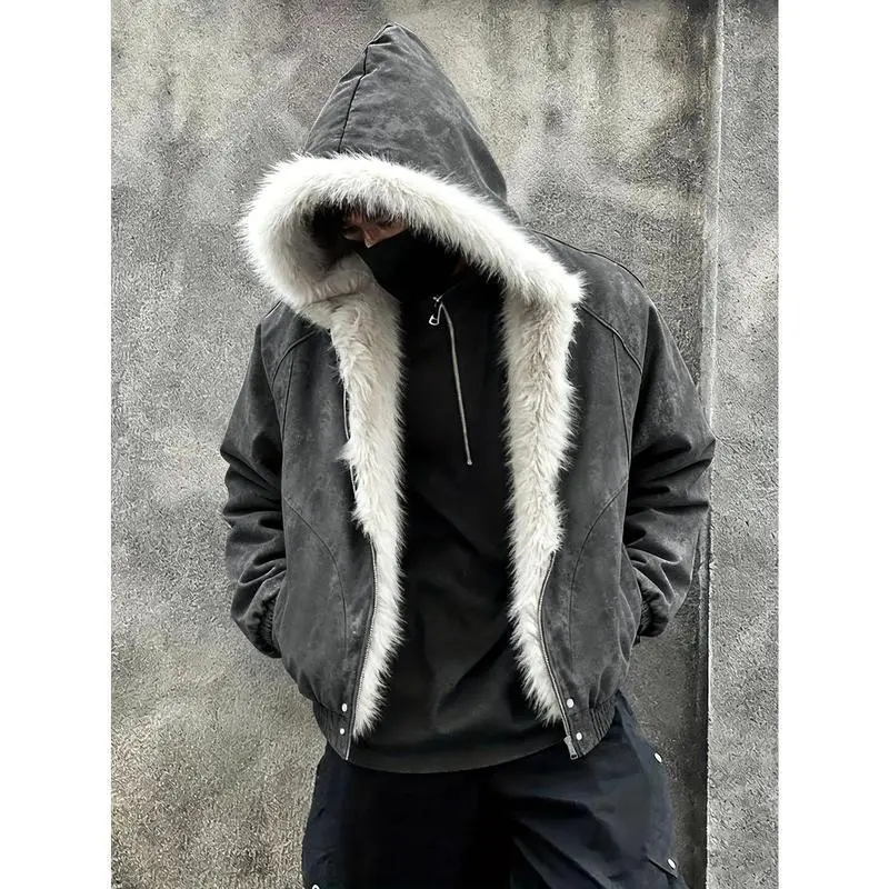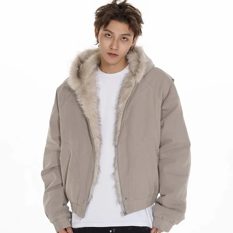 Men's Fur-Like Collar Full-Zip Hooded Jacket - Winter Warm Filled, Beige/Black Outdoor/Streetwear/Casual Cold-Weather Coat
