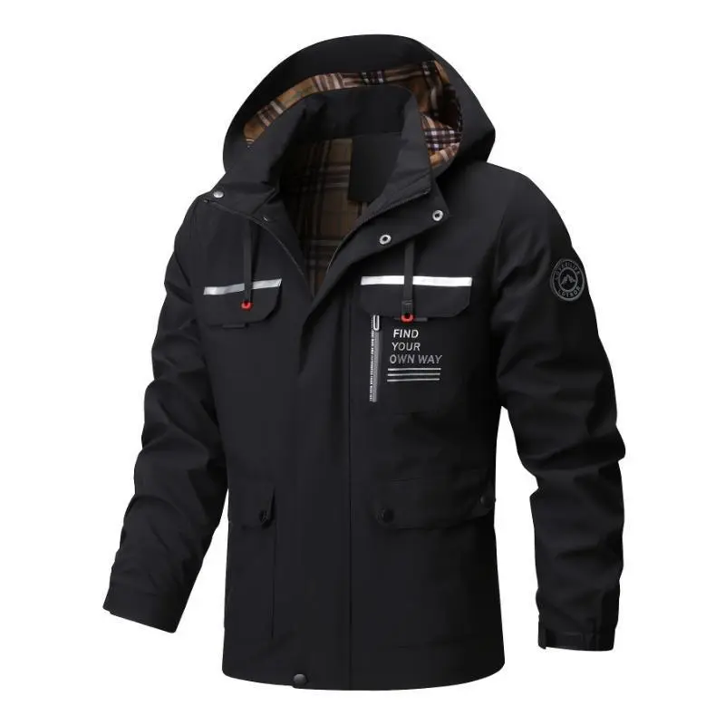 Multi Pocket Windbreaker Hooded Jacket, Men's Casual Zip Up Jacket Coat For Outdoor Activities