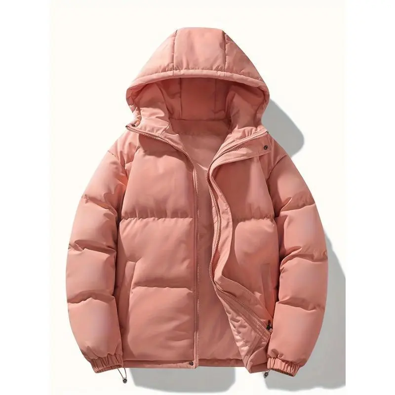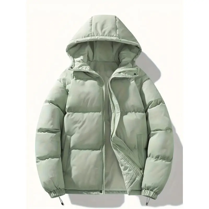 Unisex Hooded Puffer Jacket, Polyester Fiber Filled, Non-Stretch Solid Color, Long Sleeve, Regular Fit, with Drawstring, Zipper Placket, for Daily Casual Wear, Spring/Autumn/Winter Coat