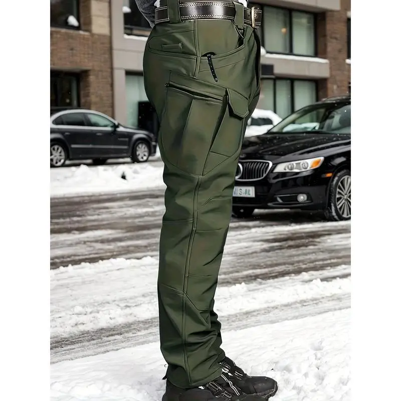 Men's Waterproof & Windproof Fleece-Lined Tactical Cargo Pants - Multi-Pocket, Loose Fit, Ideal for Hiking, Camping, and Military Activities