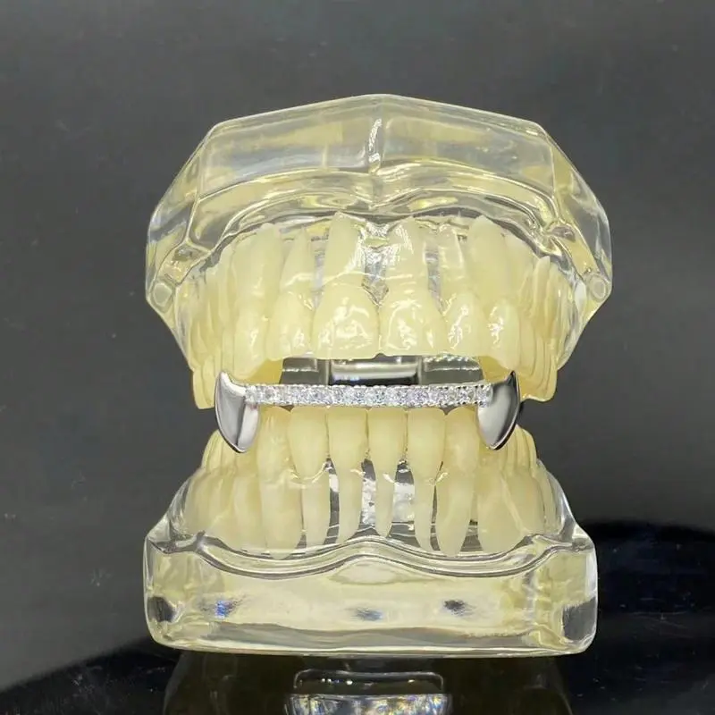 1pc Hip Hop Tiger Tooth Grillz with Sparkling Cubic Synthetic Zirconia - Golden Copper Teeth Jewelry for Music Festivals, Parties & Everyday Glam Oral