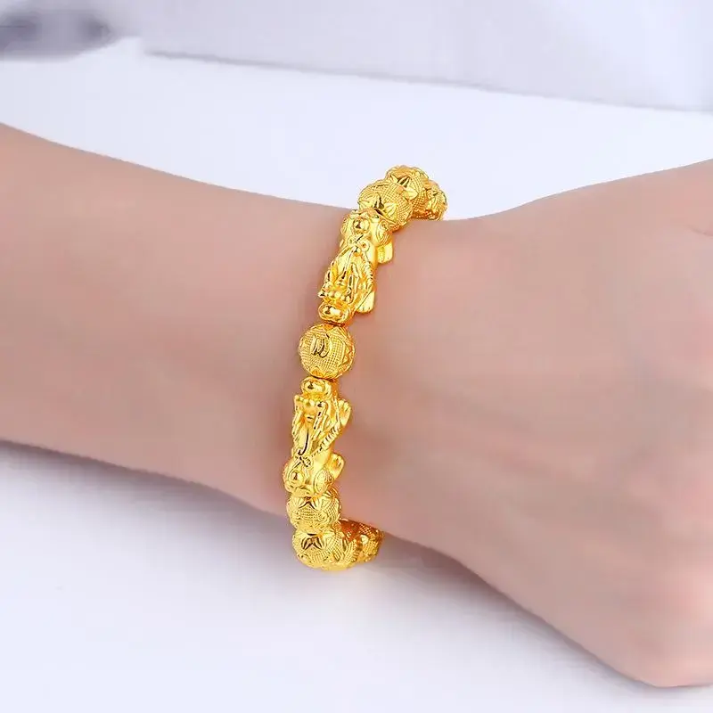 Vietnam Sand Gold Pixiu Bracelet Imitation 99 Gold 3D Hard Men's Rich Bracelet Buddha Beads Six-Word Mantra Domineering bbn ex do