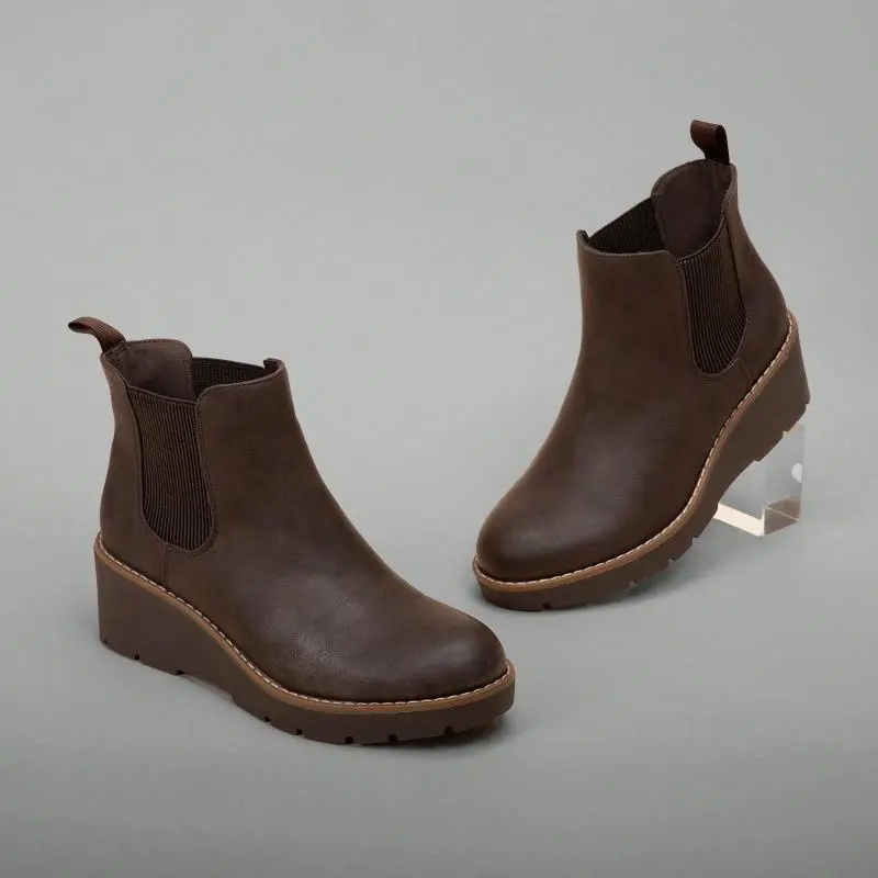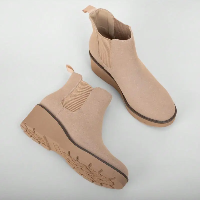 Womens Chelsea Wedge Boots Elastic Ankle Slip on Comfort Platform Lug Sole Casual Booties for Fall Winter