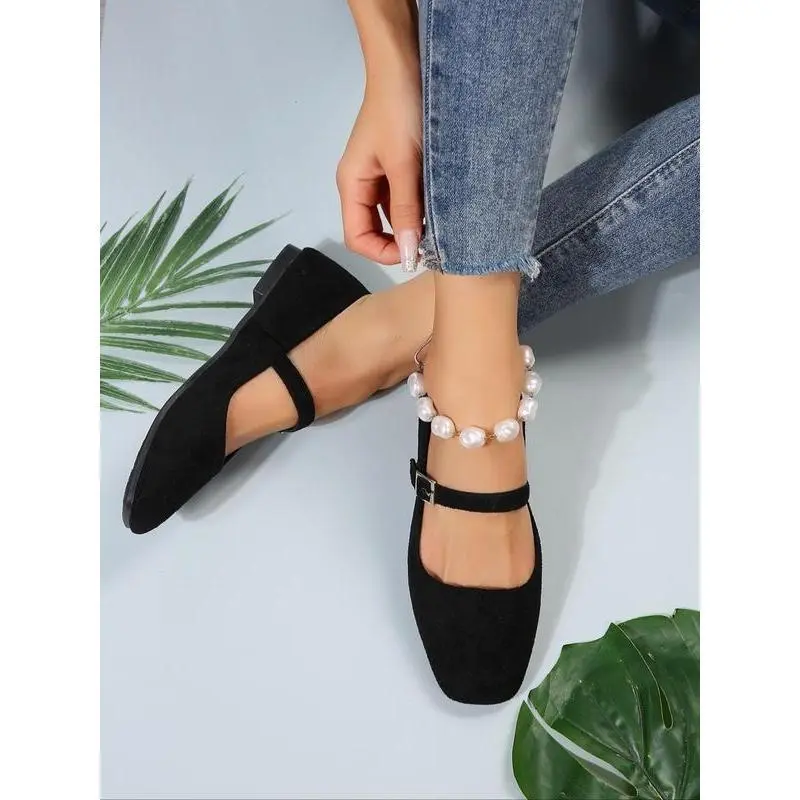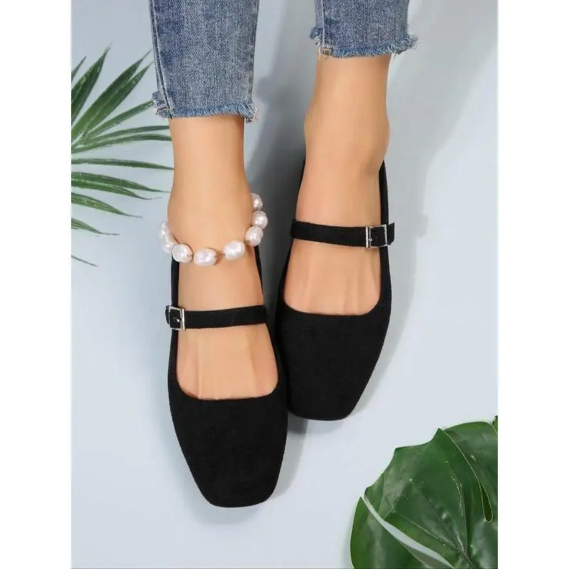 2025Women's Fashionable Solid Color Square Toe Mary Jane Flats, Casual Comfortable Buckle Design Shoes for Daily Wear, All-match Commuter Shoes for Women & Girls