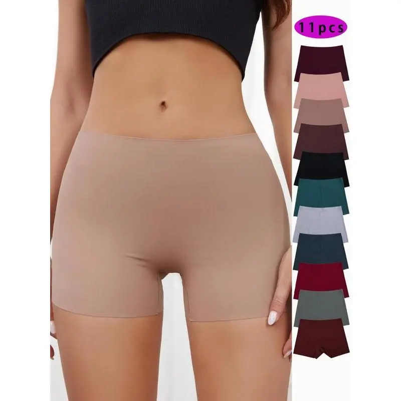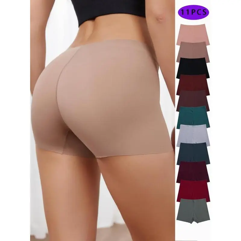 11Pcs One-piece underpants for women without rolling, naked outside, slim mid-waist ice silk traceless underpants