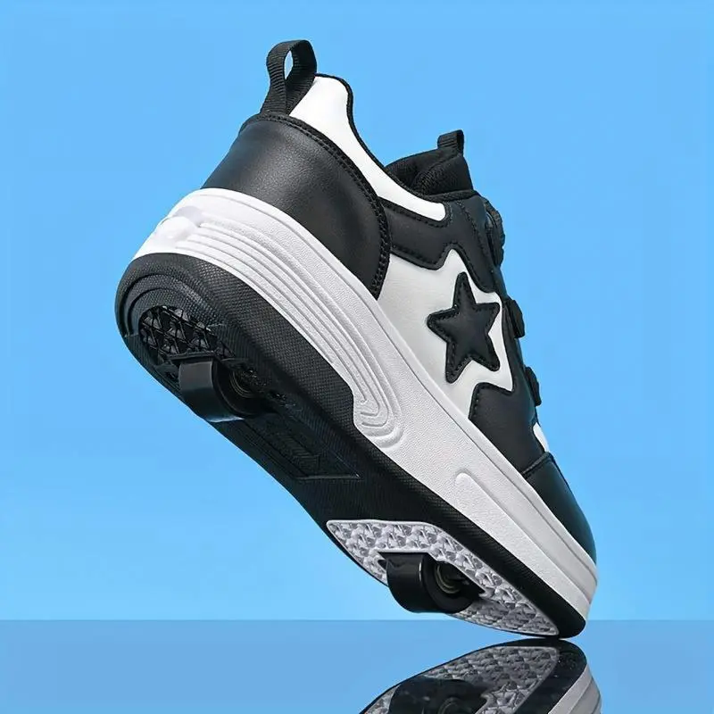 Fastening Type:Laces ??Youngsters' Trendy Roller Skate Sneakers ?for All Seasons!These trendy roller skate sneakers are designed for boys and girls aged 14 and under.They feature a solid color pattern, making them versatile for any season.The sneakers are ideal for roller skating, offering a low-top design with a round toe cap.Enjoy the convenience of detachable wheels and a rotating closure system. ???��?Durable and Comfortable The upper material is microfiber leather, ensuring durability and comfort. The TPR sole provides excellent traction. The breathable lining keeps feet cool and dry during activities. Suitable for both boys and girls, these sneakers are a choice for young skaters. Item ID: DA 232408. ??Specifications at a Glance Pattern: Solid color Season: Fall, All-season Applicable: 14 And Under Brine Material: TPR Insole Material: Not specified Closure Type: Rotary Toe Cap: Round Toe Scene: Roller Skating Style: Not specified Applicable: Boys, Girls Upper height&cylinder height: Low top