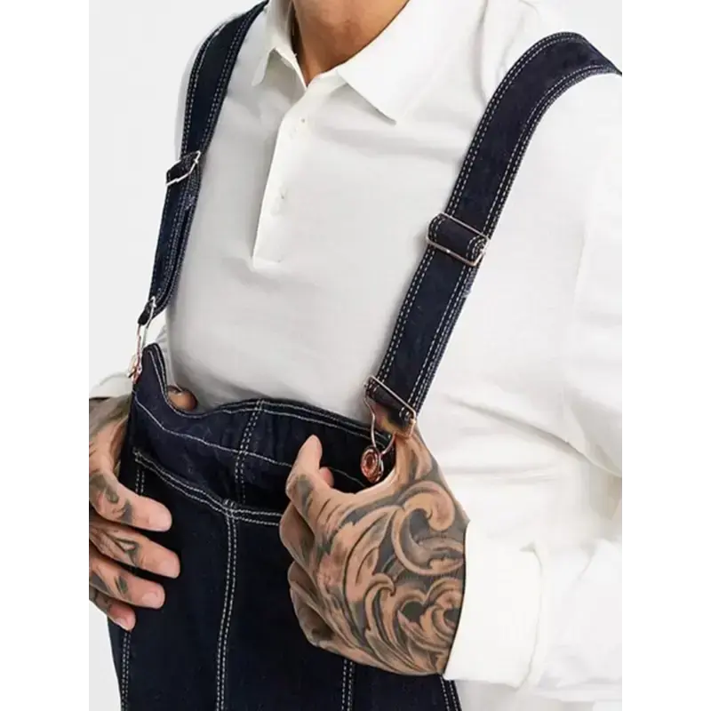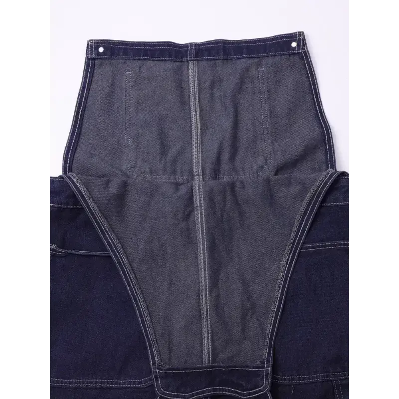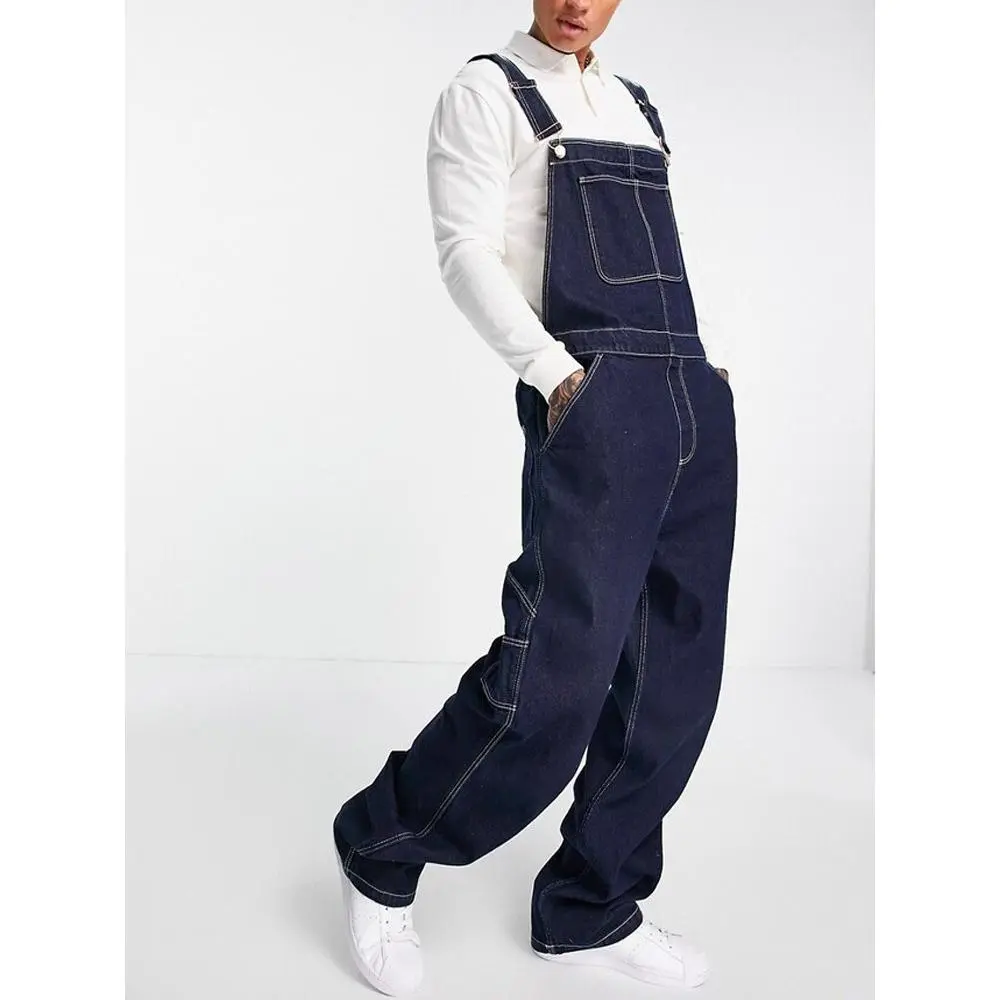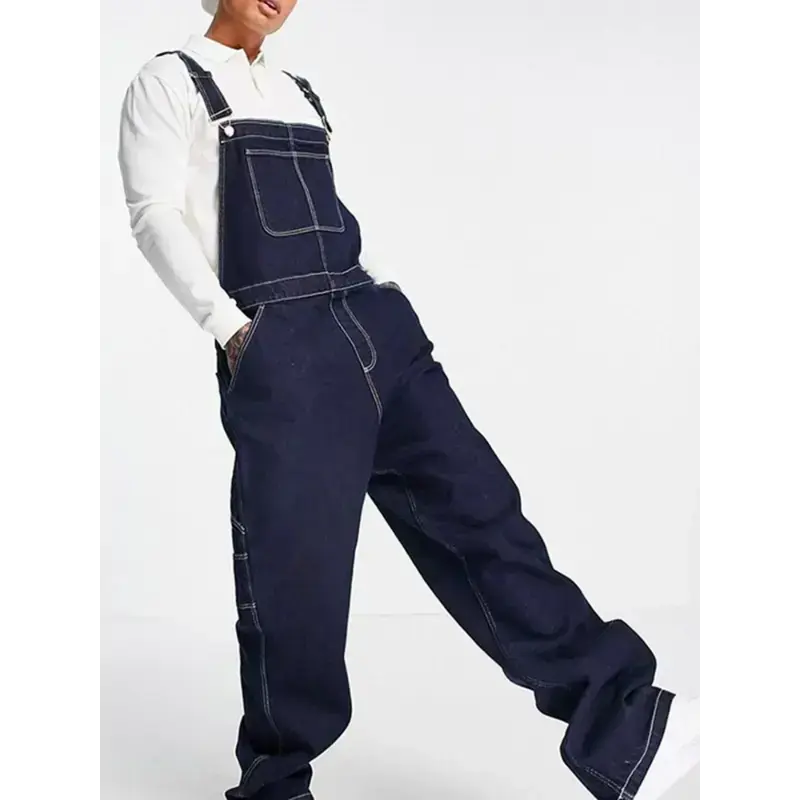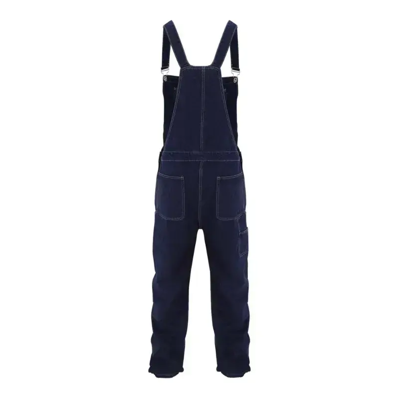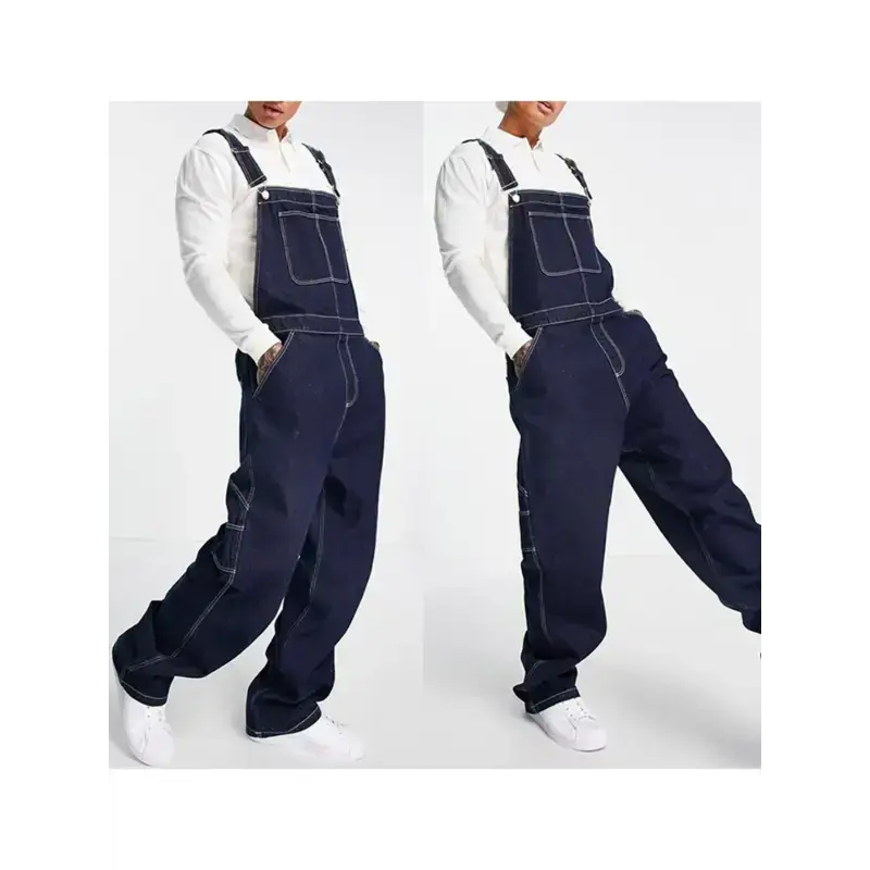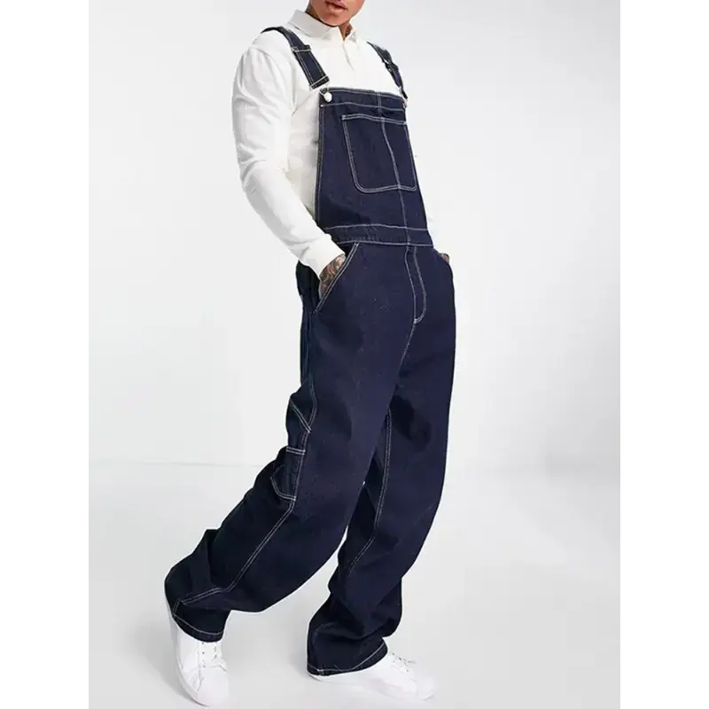 Men's Plus Size Lightweight Denim Bib Overalls - Adjustable Straps, Solid Dark Blue, Casual & Workwear Style, Machine Washable