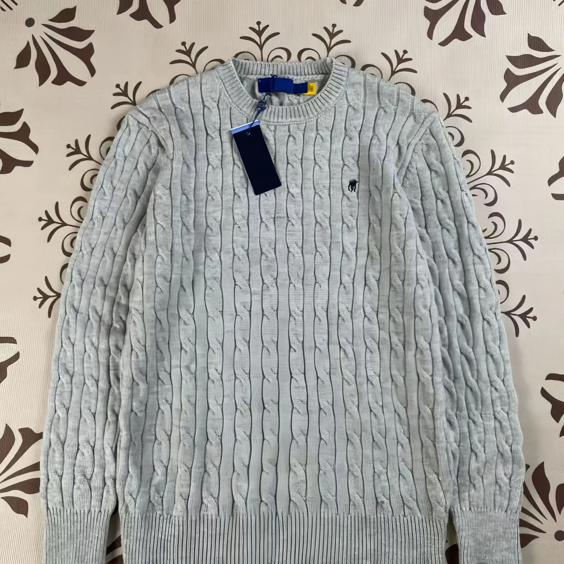 Men's Fall Winter Casual Loose Fit Knit Sweater Pullover, Heart Peach Embroidery, Vintage Style, Long Sleeve, Korean Commuter Fashion