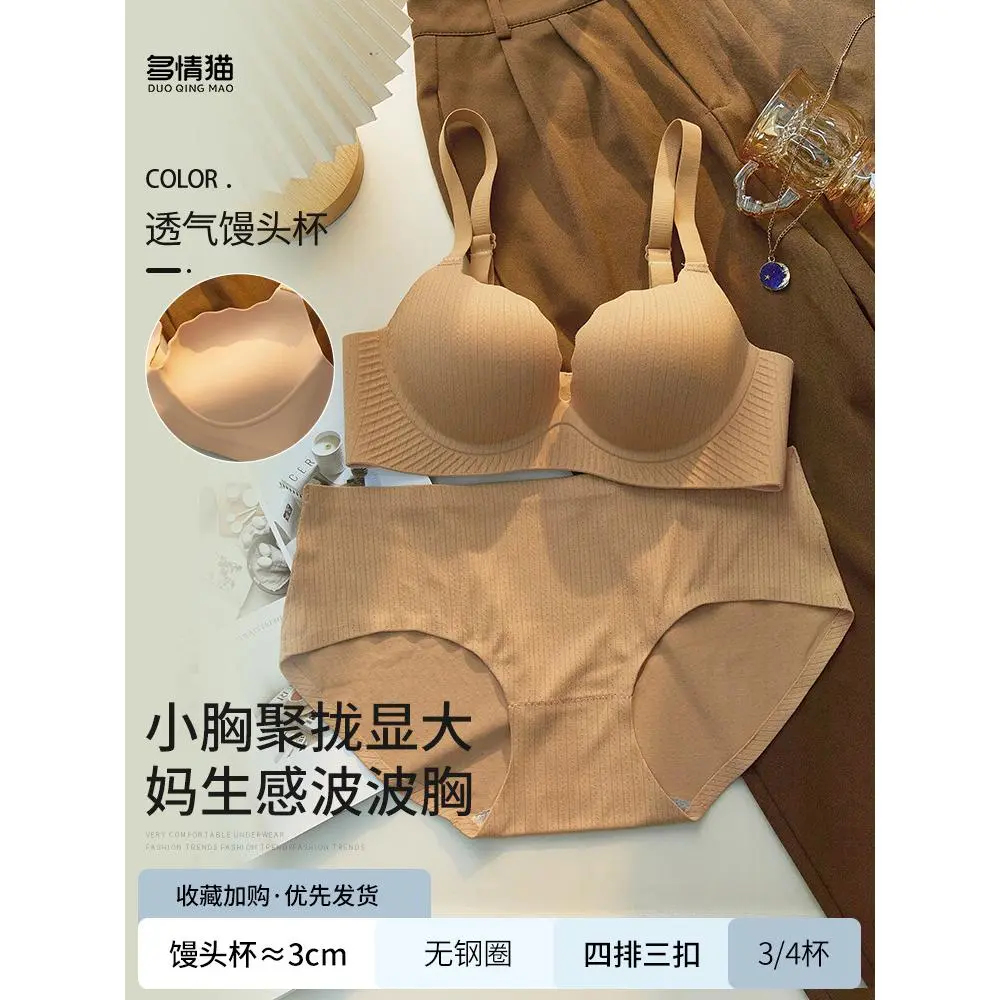 Super thick push up bra without steel ring filling and splicing underwear, small/flat chest, comfortable and sexy natural lifting