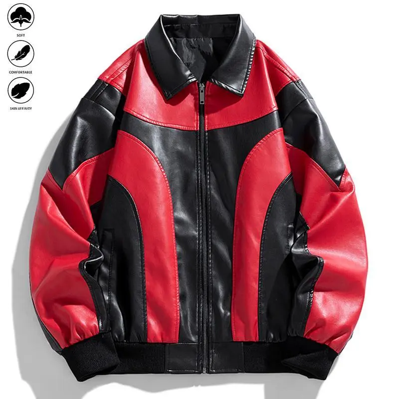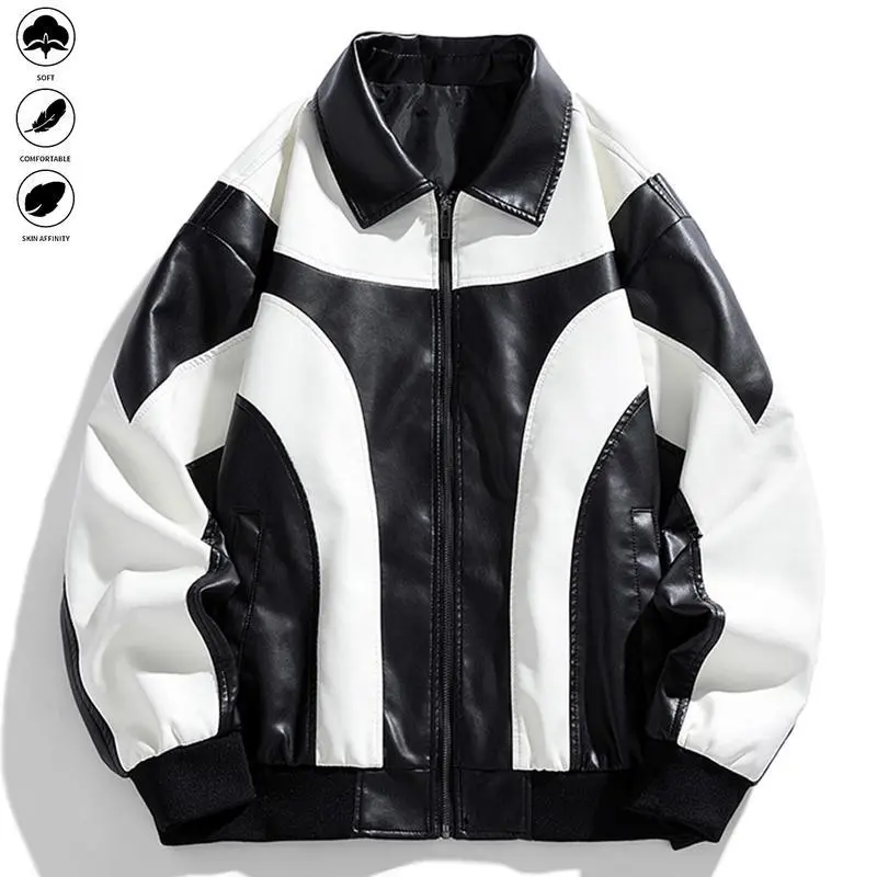 Men's PU Leather Motorcycle Jacket - Zipper Riding Coat, Stand Collar Non-Stretch Motorbike Gear Suitable for Urban Commuting & Casual Trips - Easy-to-Clean Motorcycle Jacket