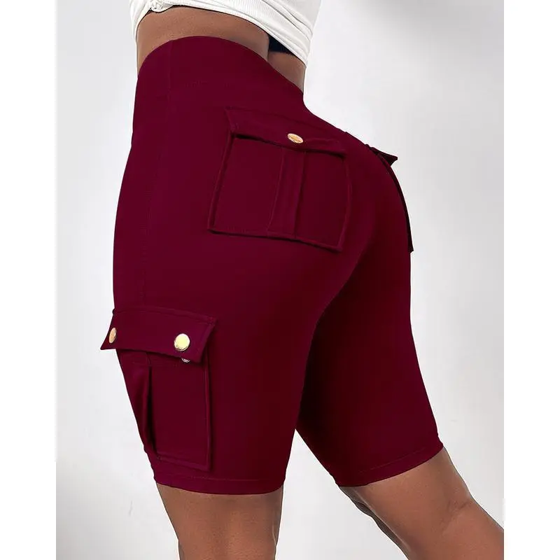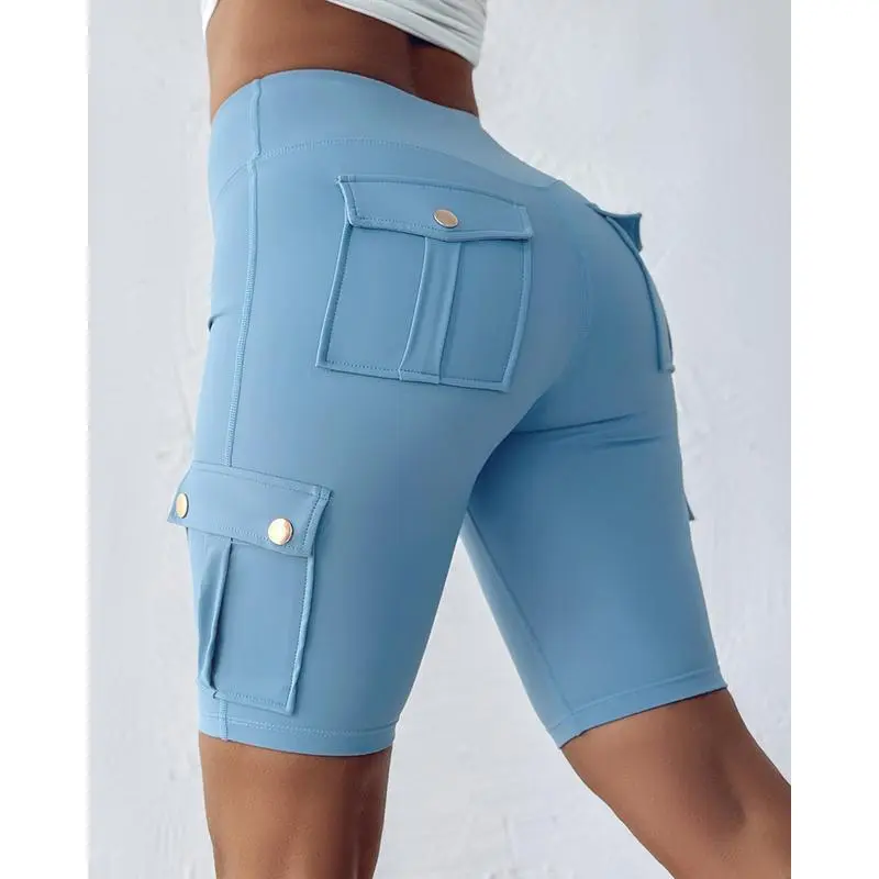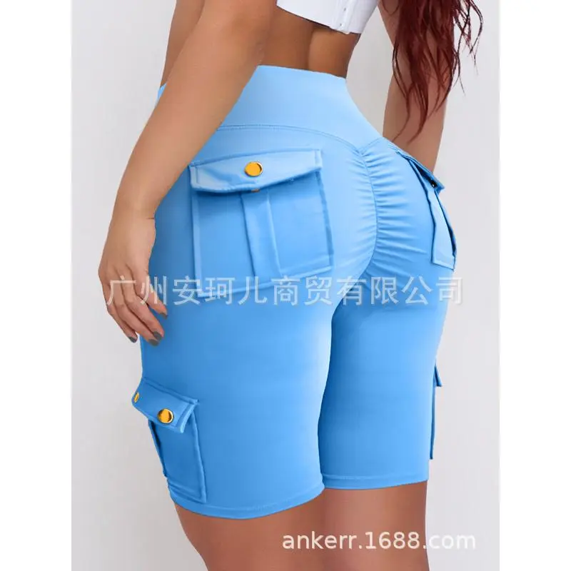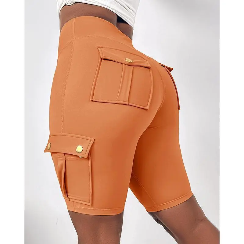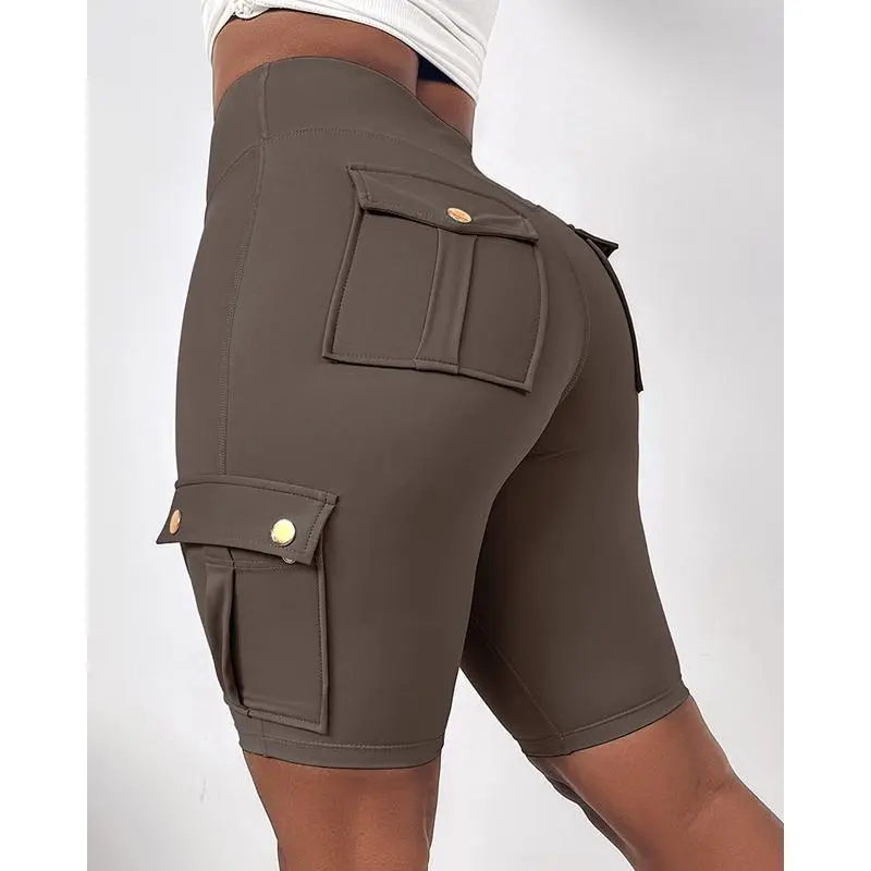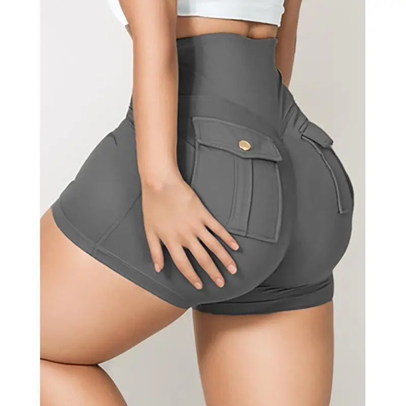 Women Tummy Control Butt Lifting Active Shorts High Waist Flap Pocket Workout Bermuda Cargo Running Shorts