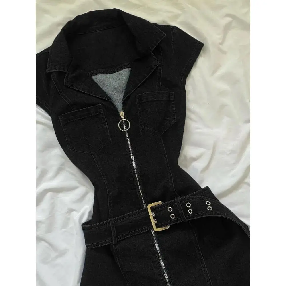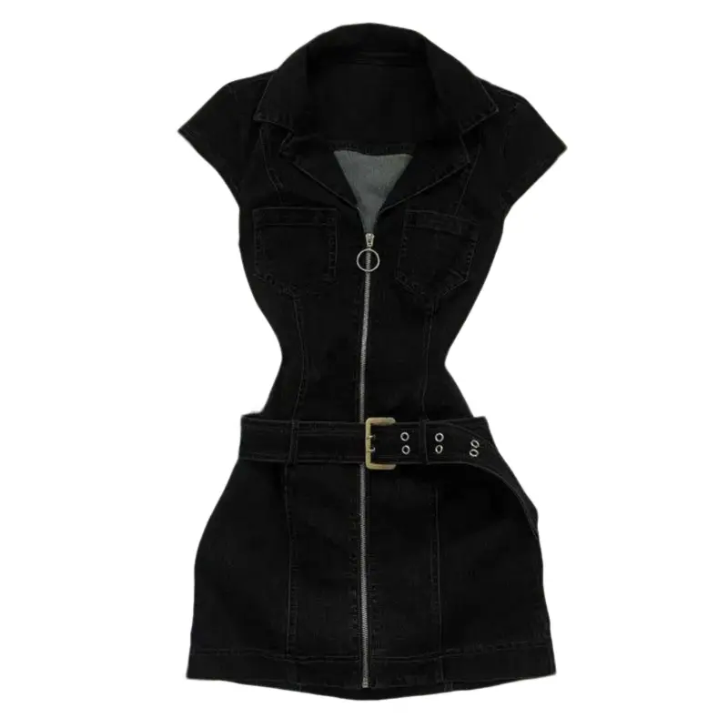 Crafted with care in Guangdong, this dress is not just about style; it's also about comfort. The cotton and polyester blend ensures a breathable and durable fabric that withstands the demands of the season. The inclusion of a natural waistline and regular fit type caters to a variety of body types, ensuring that everyone can enjoy the elegance and ease of this denim dress. Whether you're looking for a unique piece to add to your Y2K collection or a versatile dress to wear under a jacket, this American Retro Black Denim Short Dress is the perfect choice.
