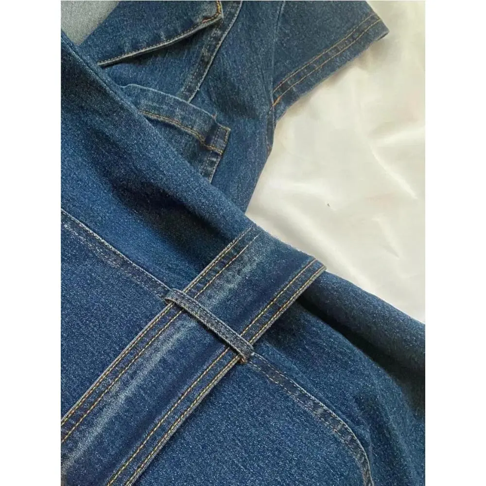 Step into the season with the American Retro Black Denim Short Dress, a harmonious blend of vintage charm and contemporary style.Designed for the fashion-forward woman, this mini dress boasts a flattering A-Line silhouette and a chic turn-down collar, making it a versatile addition to your wardrobe.The dress's solid pattern and slight stretch fabric ensure a sleek, figure-hugging fit that's perfect for various occasions, from casual outings to more formal events.