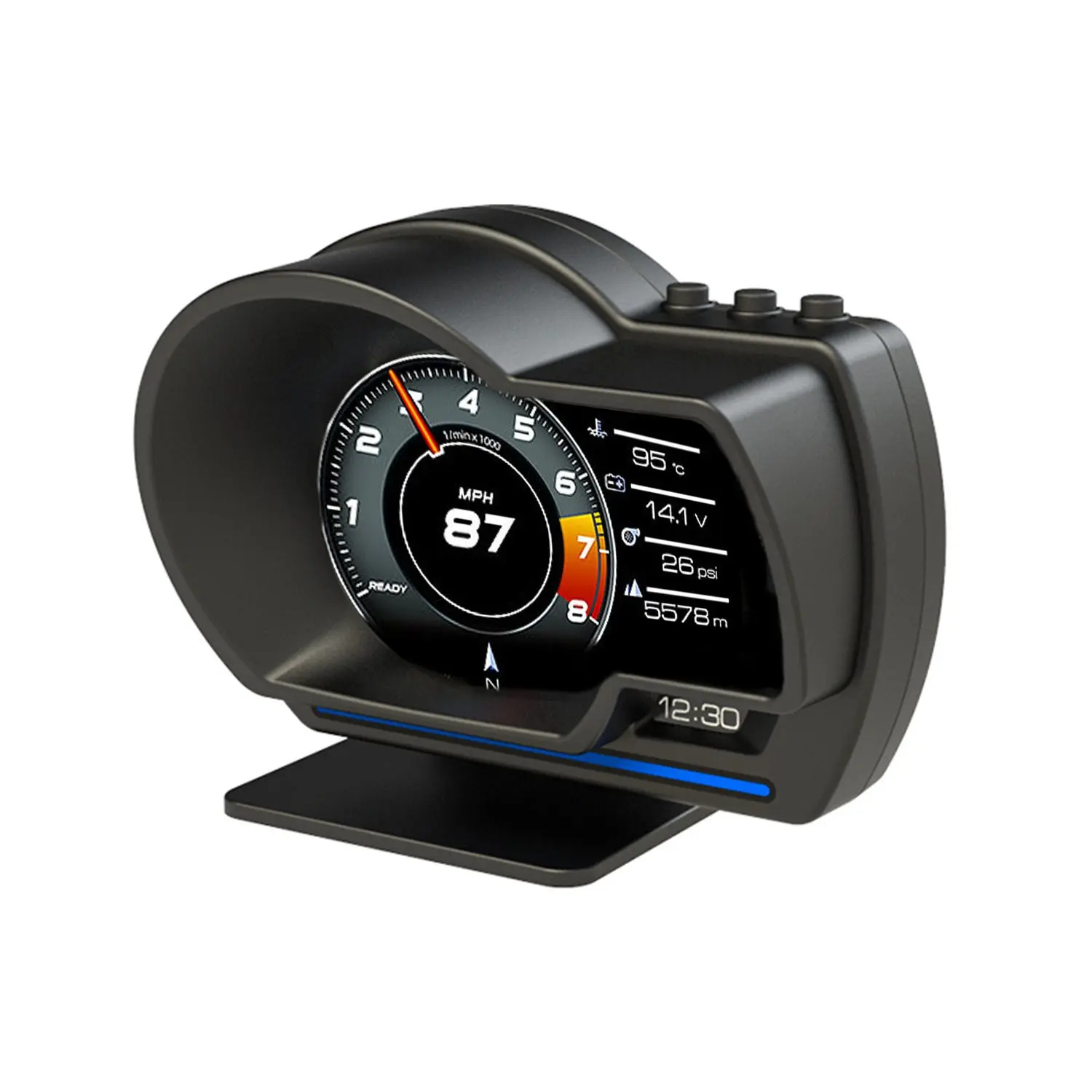 2.Comprehensive OBD Data: Displays real-time Speedometer, RPM, and Water Temp with an Overspeed Alarm to keep you informed.