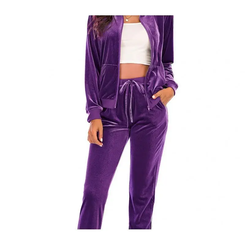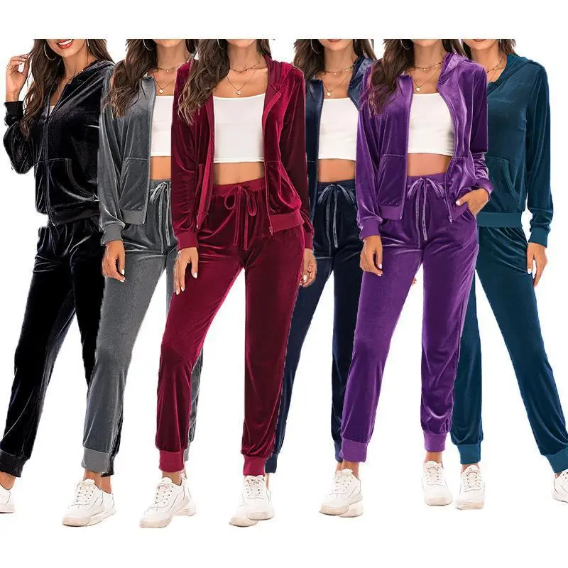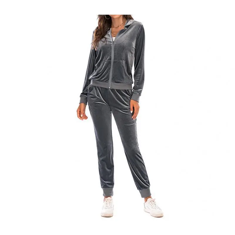 Women'S Tracksuit Set Full Zipper Hoodie Workout Pants Velvet Sweatsuit Jogging Suits Holiday Clothing