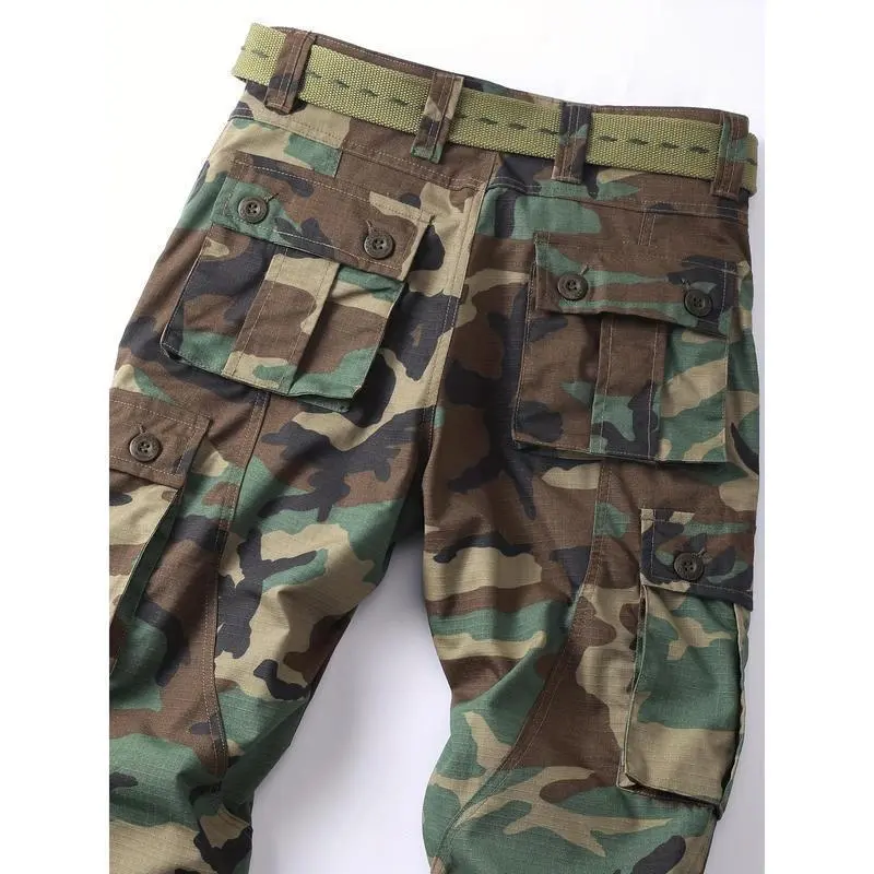 Men's Camouflage Cargo Pants | Military-Style | Cotton Blend | Multi-Pocket Design with Built-In Zipper | Non-Stretch Fabric | Machine Washable | All-Season Outdoor & Casual Wear Menswear Loose