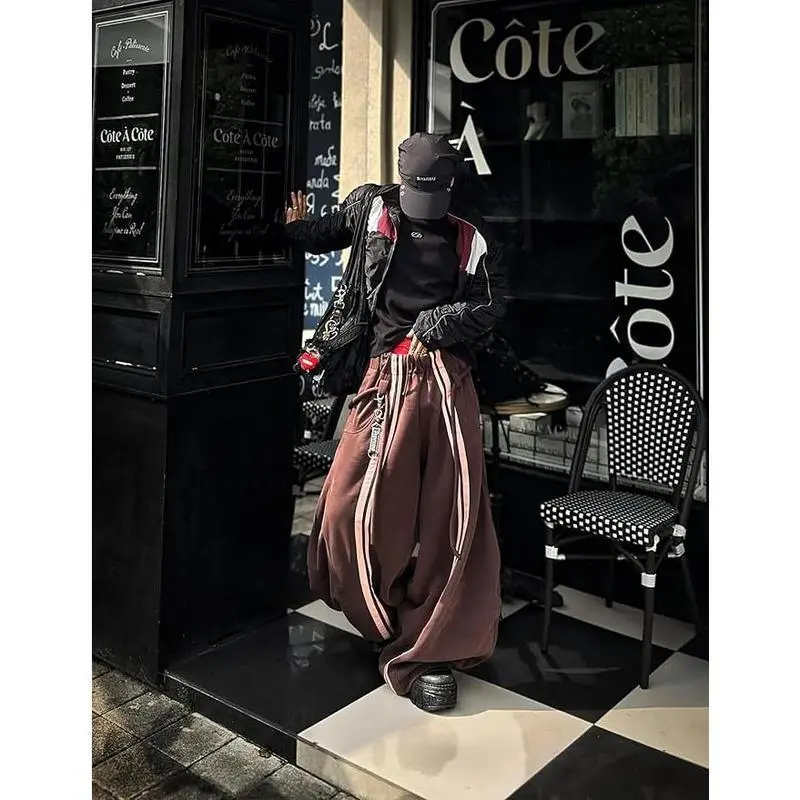Stripe Super Baggy Sweatpants Oversized Barrel Pants Vintage Wide Leg Elastic Waist Lantern Trouser Unisex