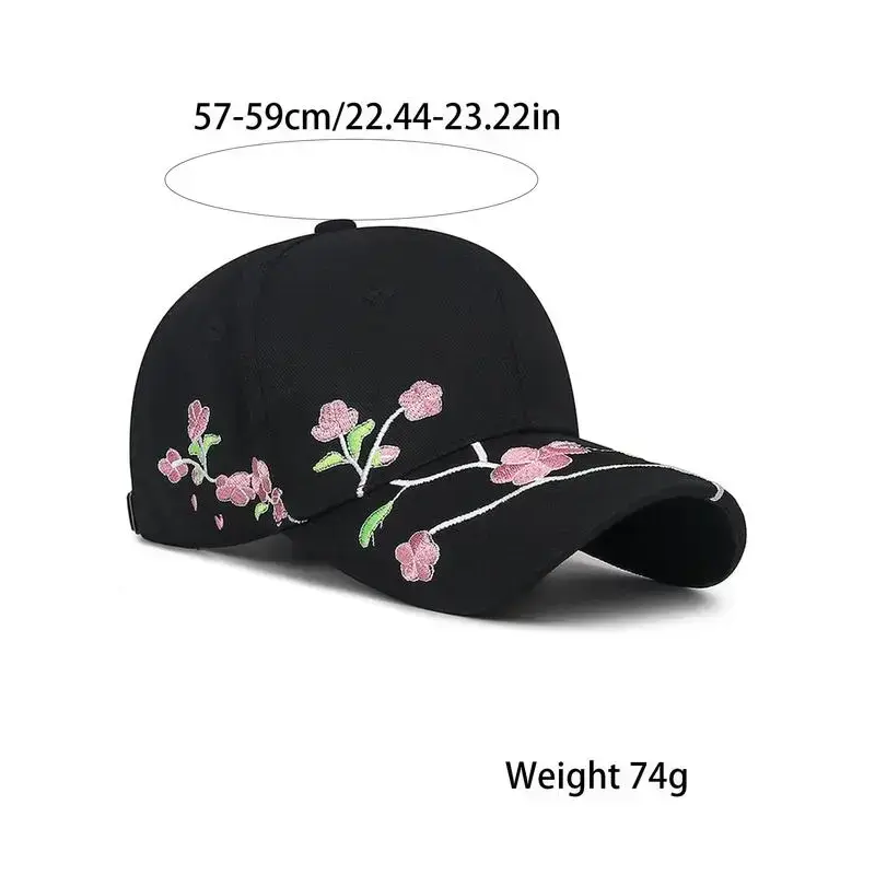【Unique Embroidery】: Featuring a distinct plum blossom embroidered design, this cap elevates your summer attire with a touch of floral artistry. 【Sun Protection】: Designed for outdoor wear, this cap provides excellent sunshade, making it a practical choice for warm sunny days. 【Unisex Fit】: The loose-fitting design accommodates both men and women comfortably, ensuring a versatile accessory for anyone's wardrobe. 【Lightweight Material】: Crafted with medium stretch fabric, this cap ensures breathability and comfort during summer outdoor activities and sports. 【Gift Ideal】: A perfect gift option, this embroidered baseball cap is suitable for various occasions, appealing to recipients with its unique features.