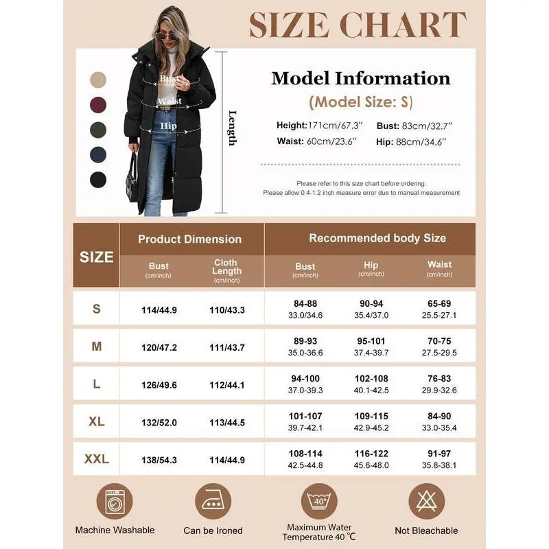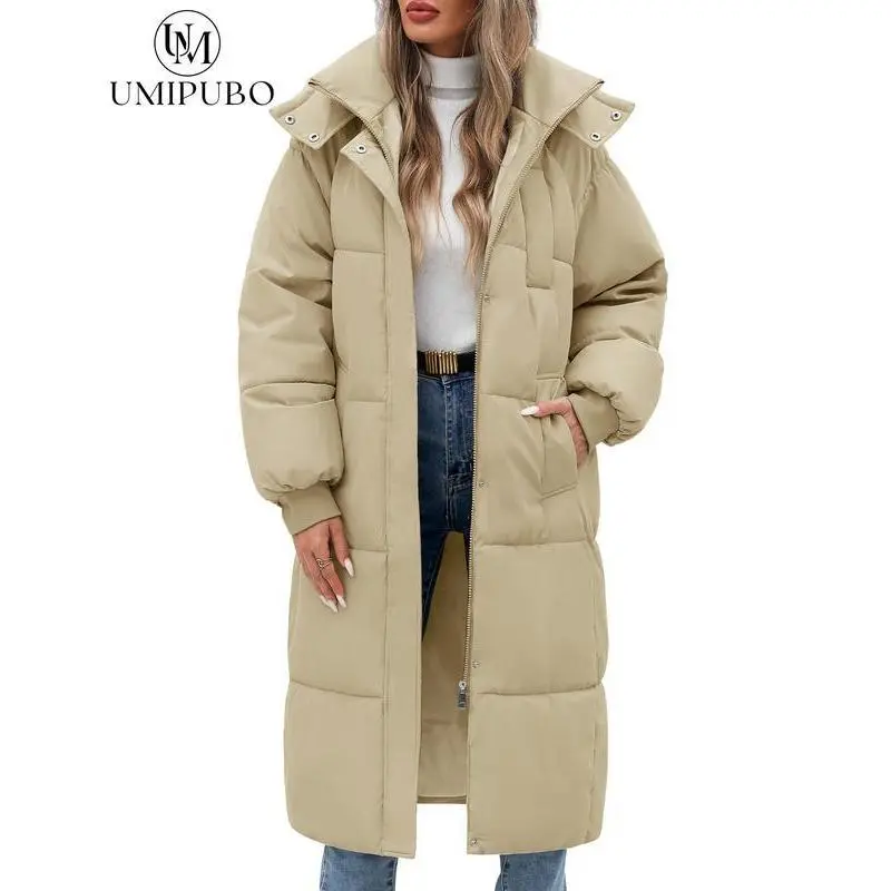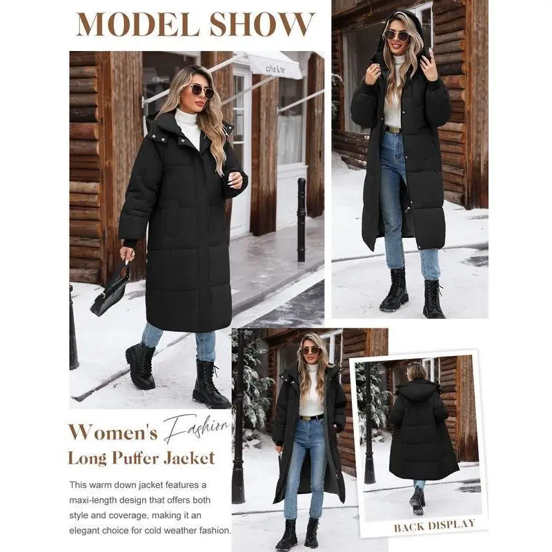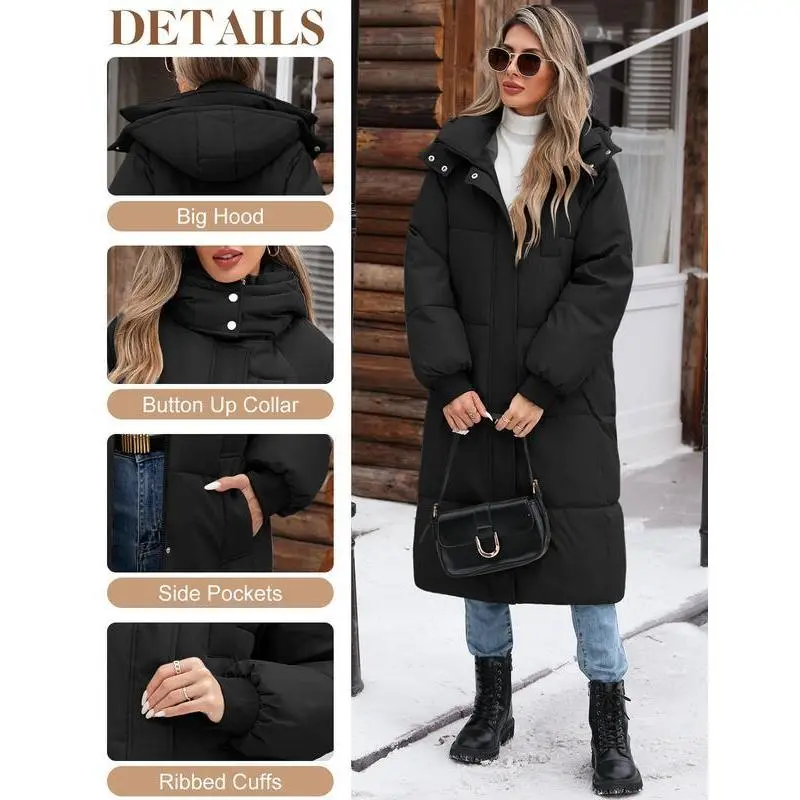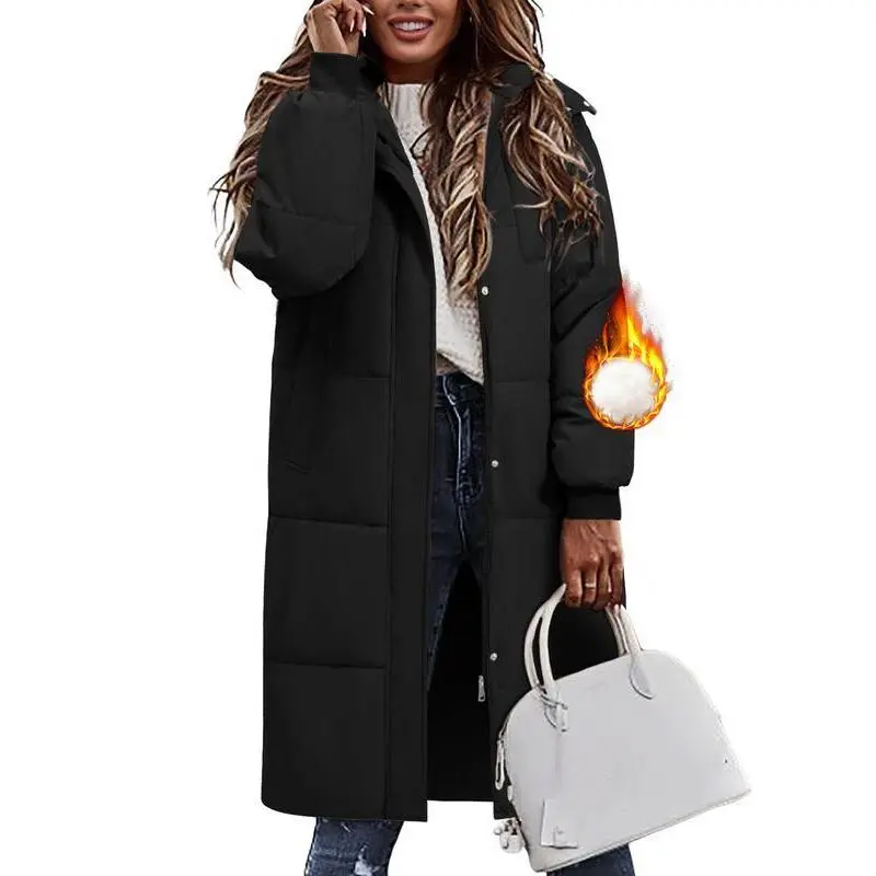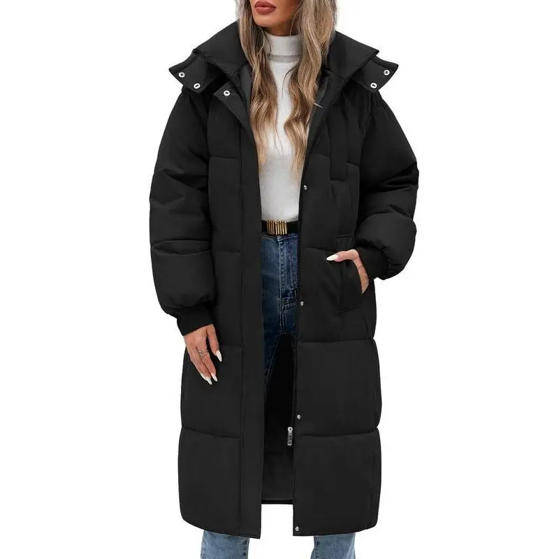 Women's long quilted jacket, winter thick warm down jacket, fashionable hooded zipper parka coat with pocketsGift