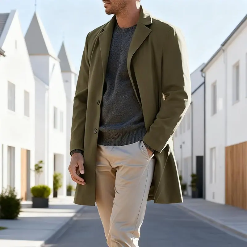 Mens Trench Coat Notched Collar Single Breasted Peacoat Winter Overcoat With Pockets