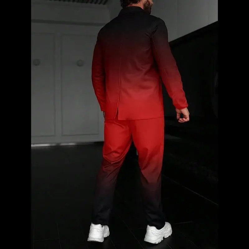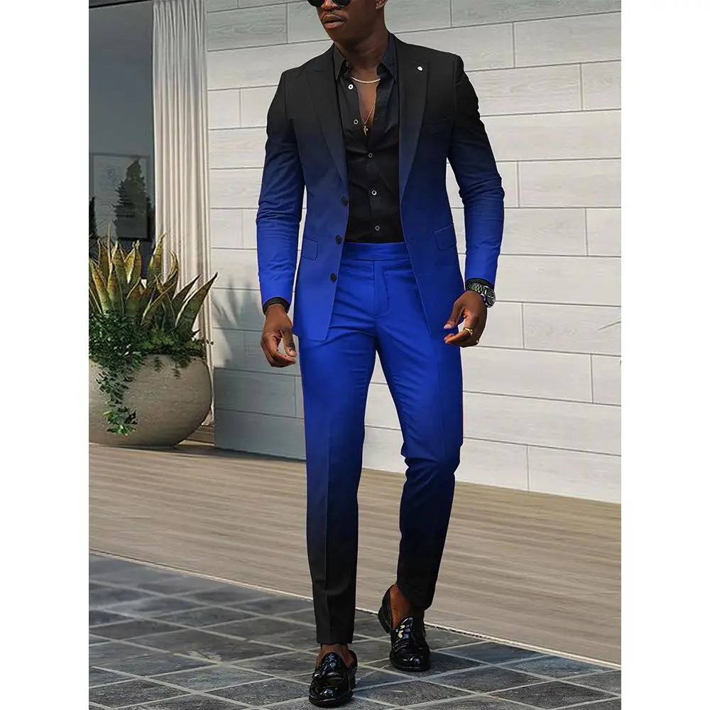 Men's Business Solid Color Contrast Trim Lapel Blazer & Pants Two-Piece Set, Slim Fit Formal Suit Set for Wedding Party, Men's Clothing for All Seasons, Menswear