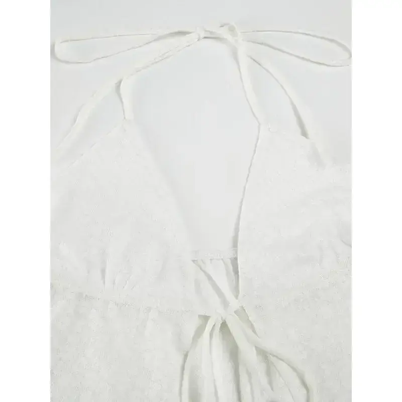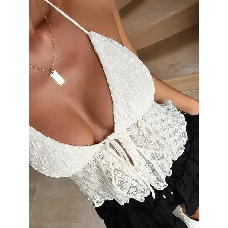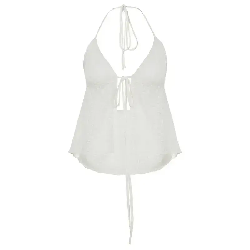 Women's Tie Front Backless Spaghetti Strap Halter Neck Top, Fashion Casual Elegant Semi-sheer Tie Back Top for Summer, Women's Clothing for Beach Holiday, Boho Chic Sleeveless Womenswear