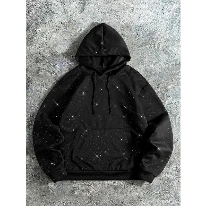 Unisex Streetwear Hoodie with Trendy Design Features Fine Glitter Details that Sparkle Available in Various Colors for Stylish Outfits