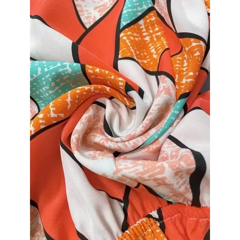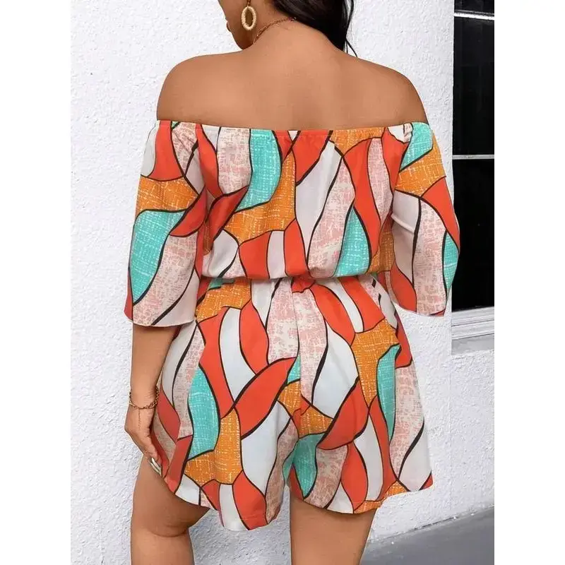 【Plus Size】 All Over Print Off The Shoulder Romper, Casual Romper for Daily Wear, Women's Plus Clothing for SummerGift