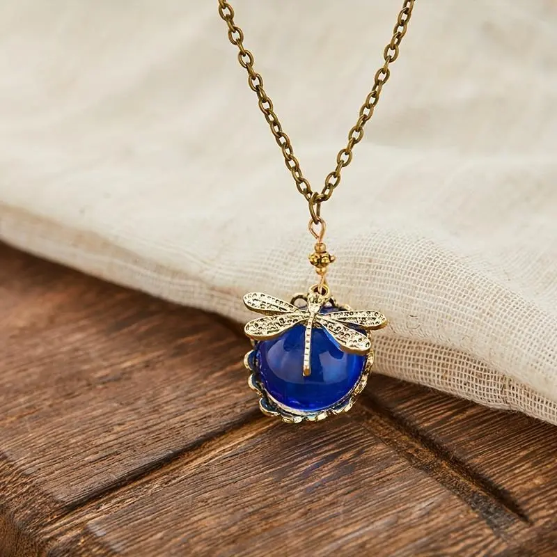 VintageVictorianStyleHandmadeNecklace-MoonDragonflyWithWhiteFauxOpalJewelryPendantChainsvintagejewelry