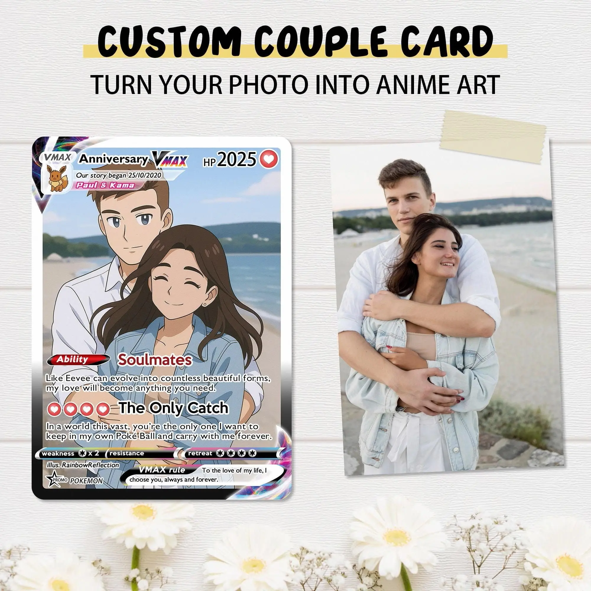 Custom Photo Anniversary Card, Personalized Photo Anime Card, PokeCard Gift, Wedding Card, Custom Card for Couple, Gift for Him, Gift for Her