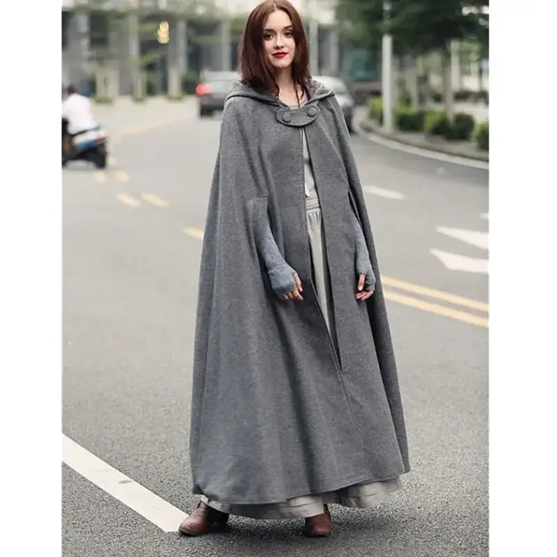 Women's Hooded Cape Long Coat, Stylish Jacket with Hood, Elegant Oversized Longline Cape Outerwear, Versatile Autumn & Winter Warm Cloak Coat