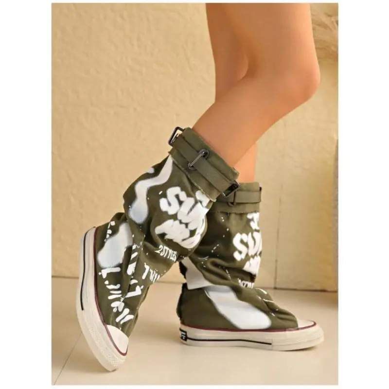 【Unique Graffiti】: Featuring a distinct graffiti print, these boots stand out, reflecting an urban aesthetic that is both bold and creative. 【Durable Materials】: Crafted with a polyester upper and rubber sole, ensuring longevity and resilience in all weather conditions. 【Knee-Height Fit】: Designed to rise above the ankle but below the knee, providing a balanced look combined with functional coverage. 【Year-Round Use】: Suitable for all seasons, making these boots a practical addition to your footwear collection, usable year-round. 【Streetwear Influence】: Positioned as part of streetwear culture, these boots incorporate modern trends that resonate with urban fashion enthusiasts.
